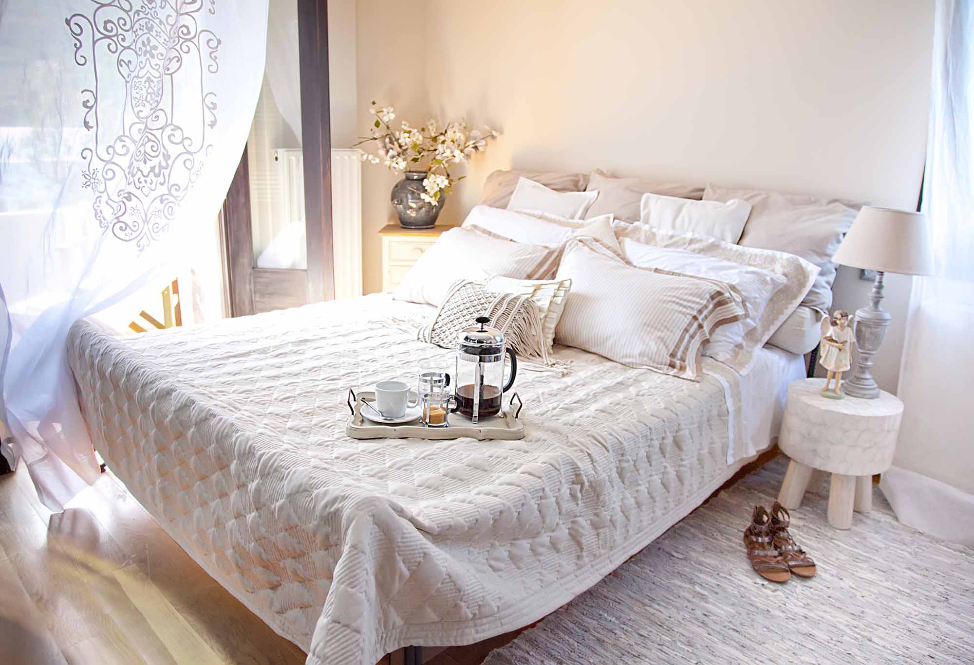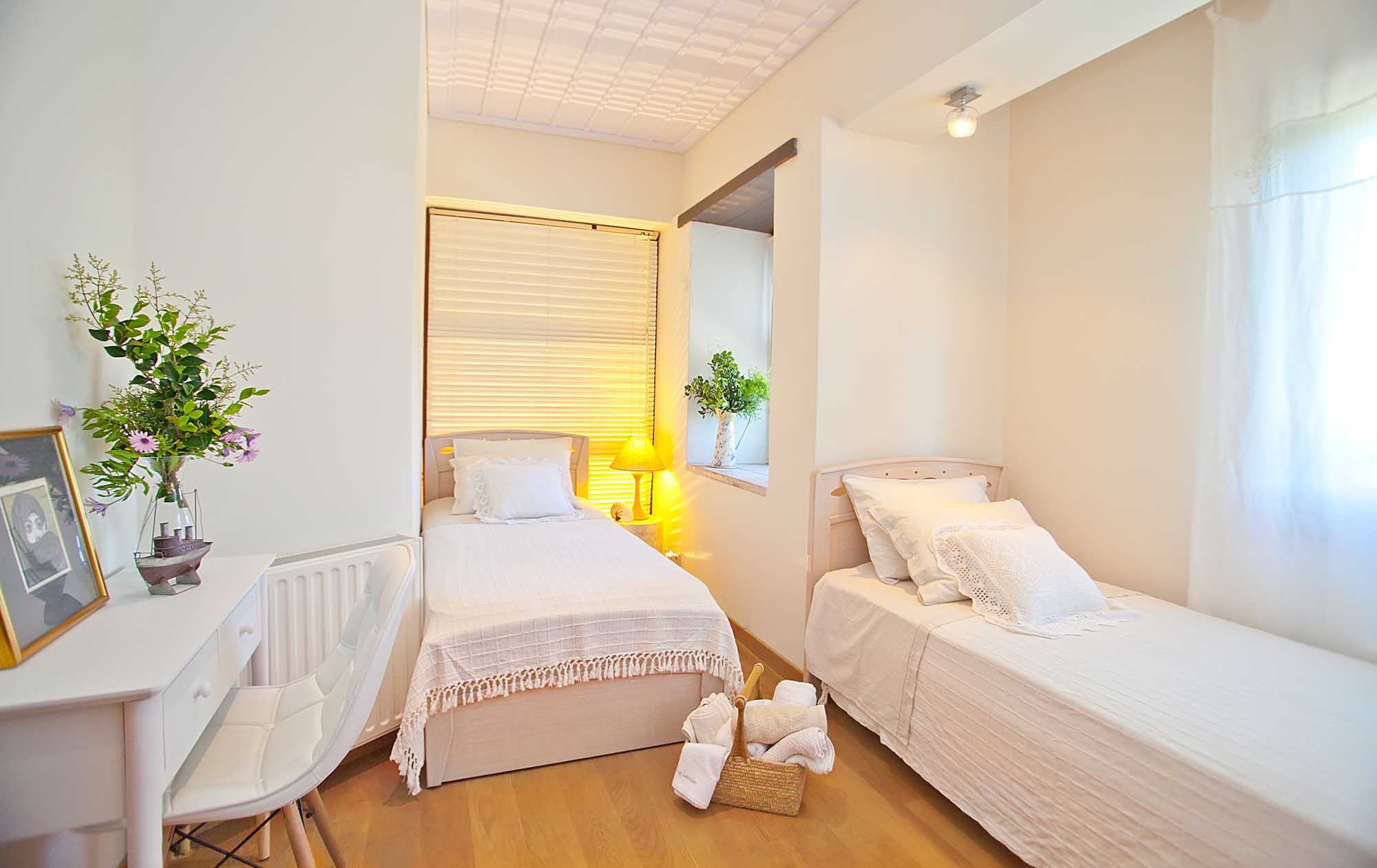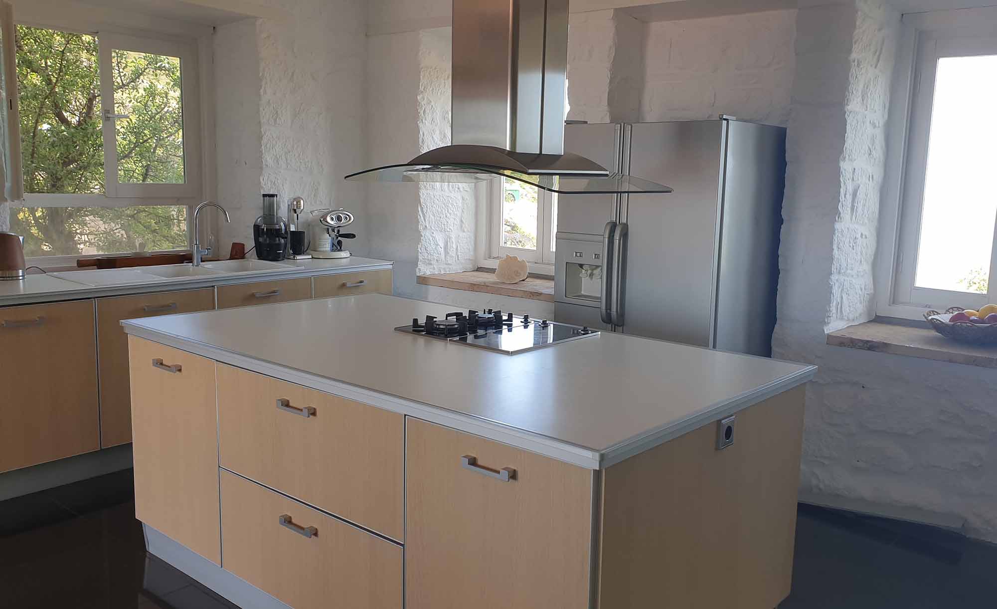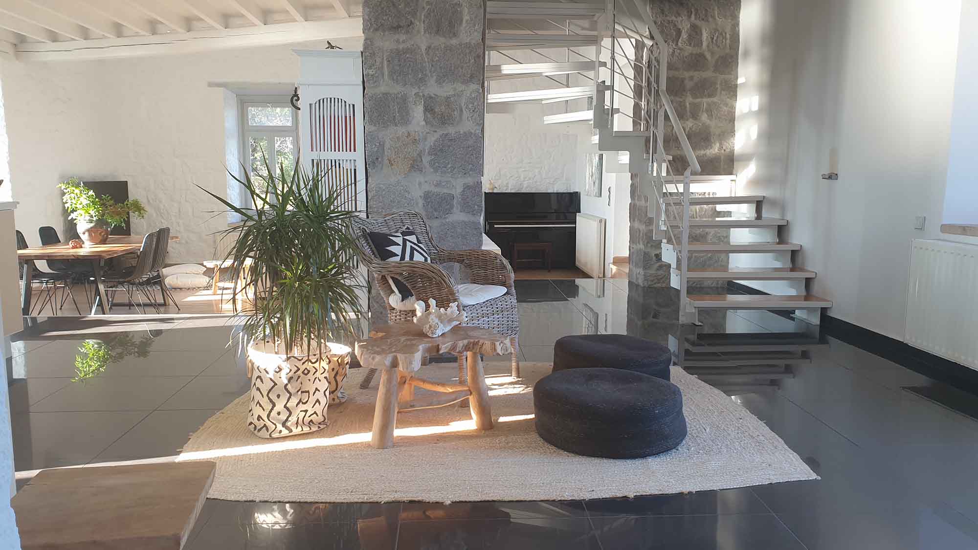 The interior of the house combines local ethnic style with modern lines while space and amenities offer a cozy and bohemian aura. There are four bedrooms, two with double beds and two with two single beds each served by 3 bathrooms one with bathtub and two with shower (one of which with hydro-massage). Bath and sea towels, sleepers, ecological shampoo and bubble bath are provided. A washing machine, dryer, iron and iron board, hair driers are also available to clients. The villa has central heating and parking.