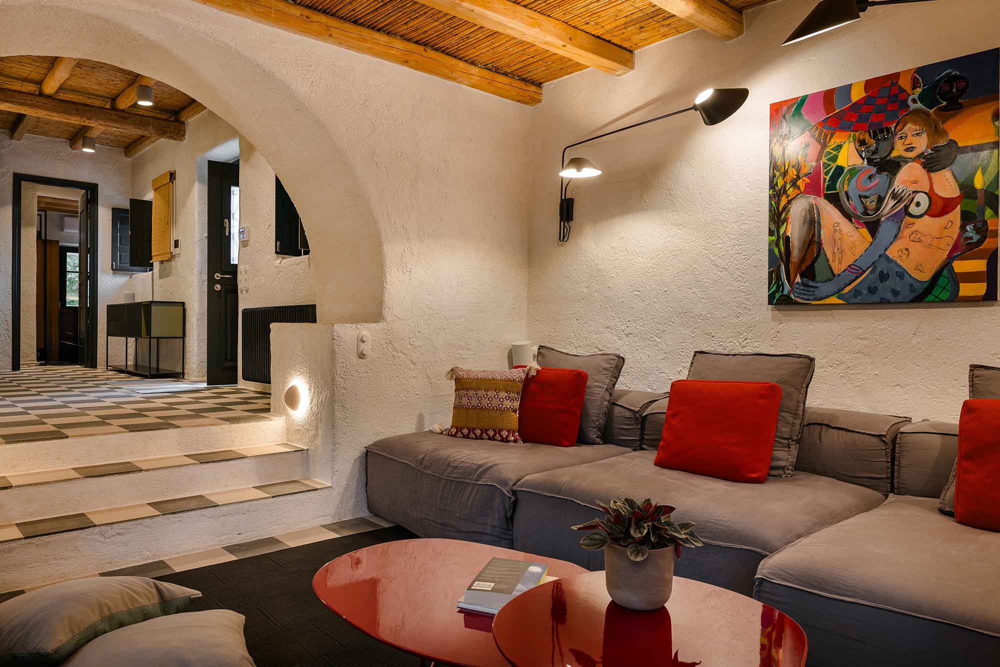 Villa Siesta spans an impressive 343 square meters in the serene area of Ampelas, offering a seamless blend of traditional charm and contemporary luxury. Comprised of two separate buildings over two levels, the villa features a total of six bedrooms and six and a half bathrooms, ensuring ample space for you and your esteemed guests.