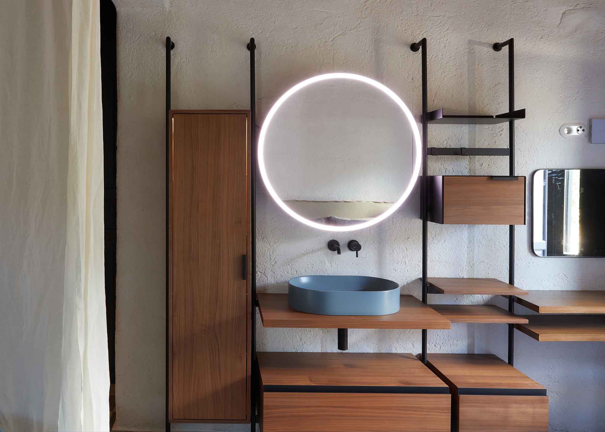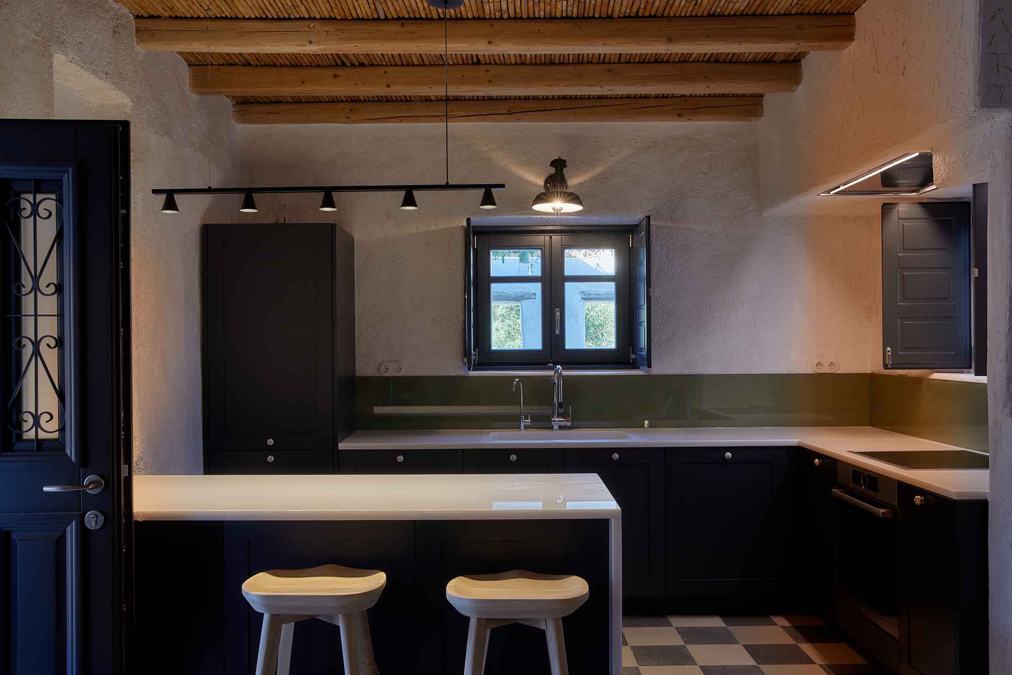 Adjacent to the main building, the secondary structure houses two additional bedrooms on the ground floor, one with an en-suite bathroom and another with a separate bathroom, ensuring privacy and comfort for guests. Each bedroom is thoughtfully adorned with plush furnishings and soothing color palettes. The ground floor of the secondary building also features a fully-equipped kitchen and a spacious living room with ample office space, catering to both leisure and work needs. The upper level, accessible via an external staircase, contains a charming two-room guest house. Complete with a bedroom, private bathroom, living room, large office with sea views, and a kitchenette, this guest house provides a secluded retreat for added privacy.