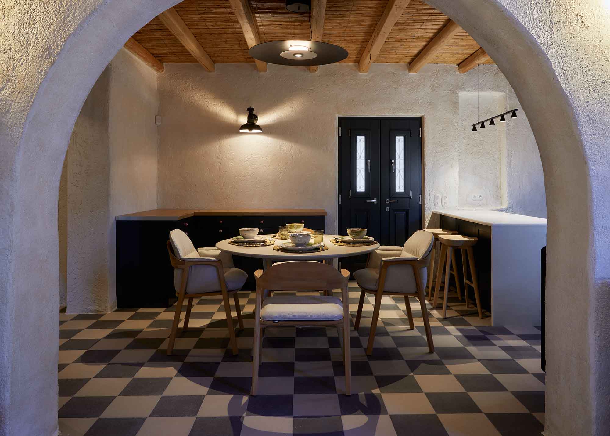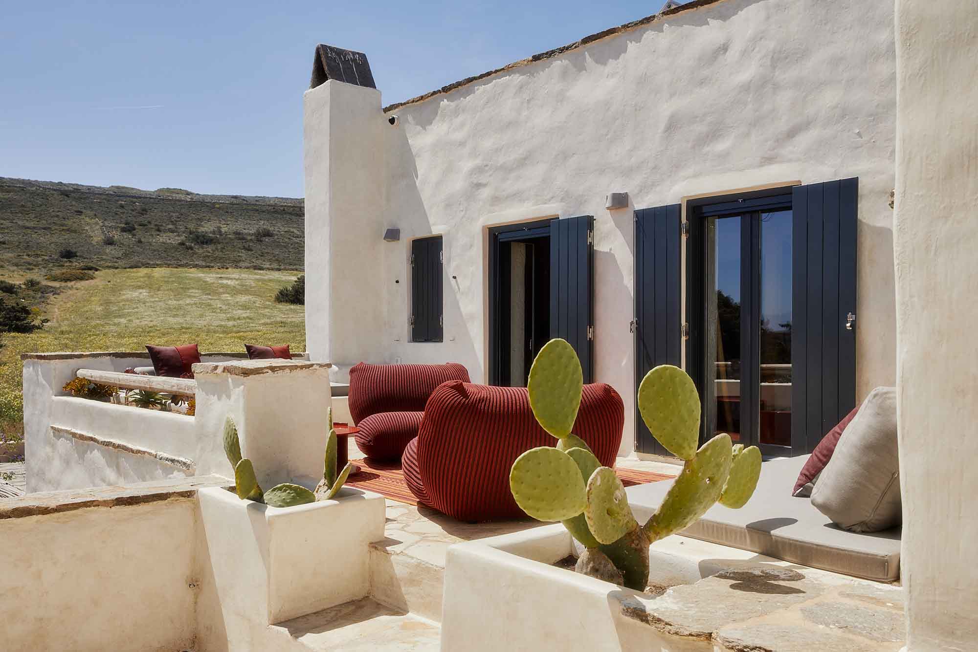 The main building showcases a meticulously designed living space that radiates comfort and style. The sleek modern decor is complemented by picturesque views of the surrounding open landscape.