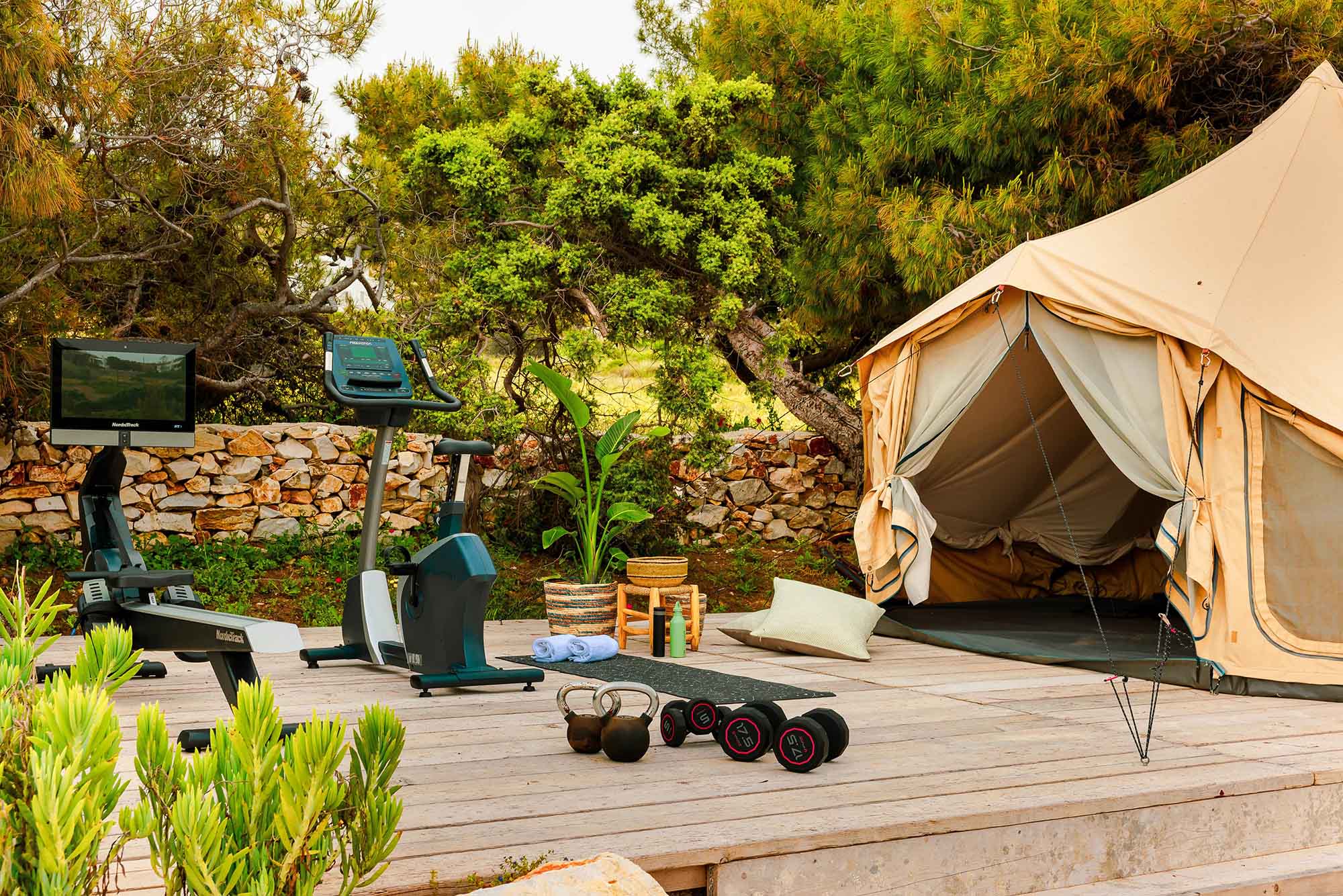 For fitness enthusiasts, Viila Siesta offers a well-equipped gymnasium with a range of modern equipment, including a spin bike, rowing machine, barbells, and kettlebells. For fun nights at home, the villa boasts an outdoor cinema area with a projector, where guests can enjoy movies beneath the night sky on comfortable and cushy seats. Families with young children will delight in the charming treehouse, elevated amidst lush greenery, roviding an enchanting retreat for playful adventures.