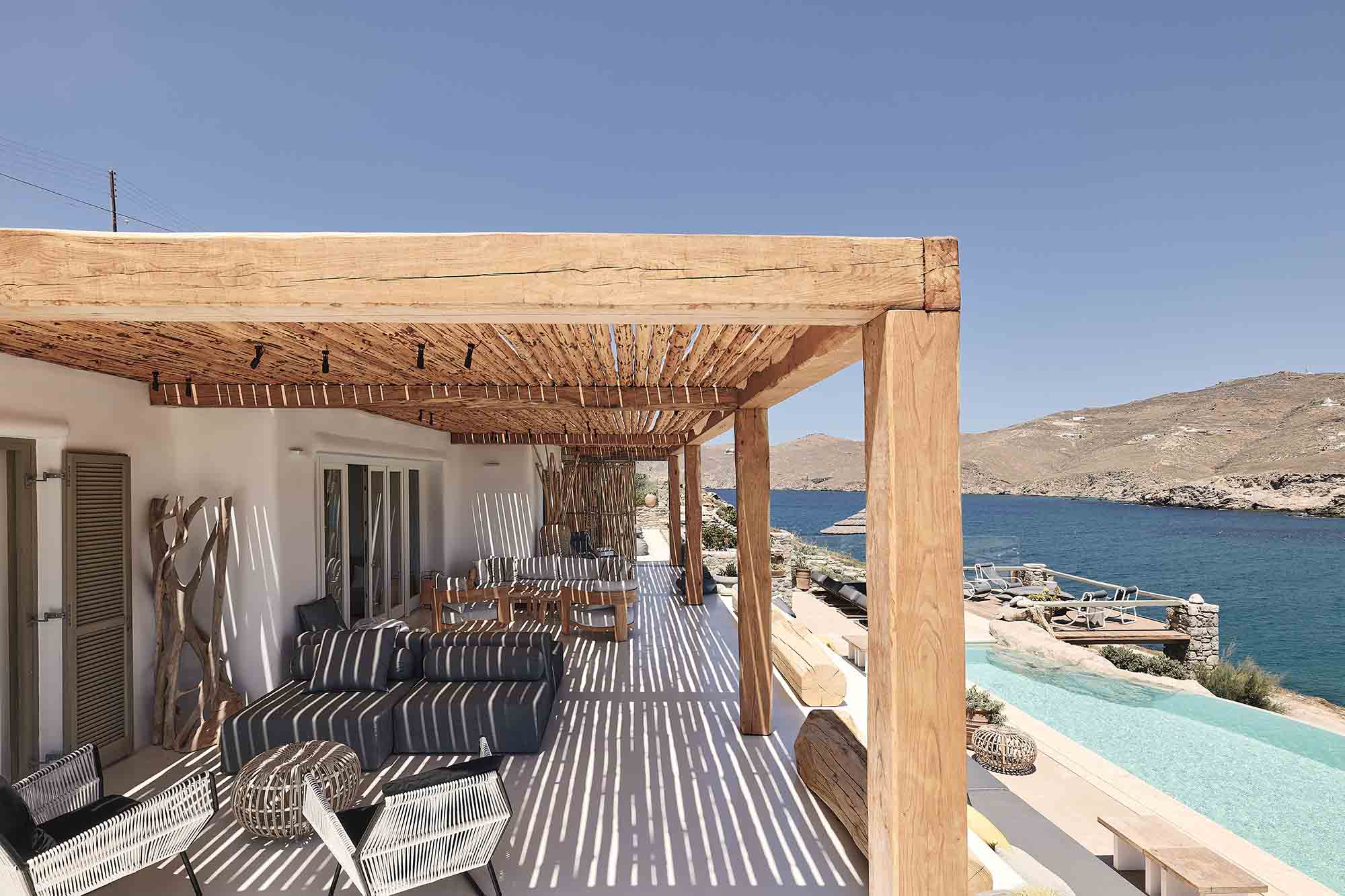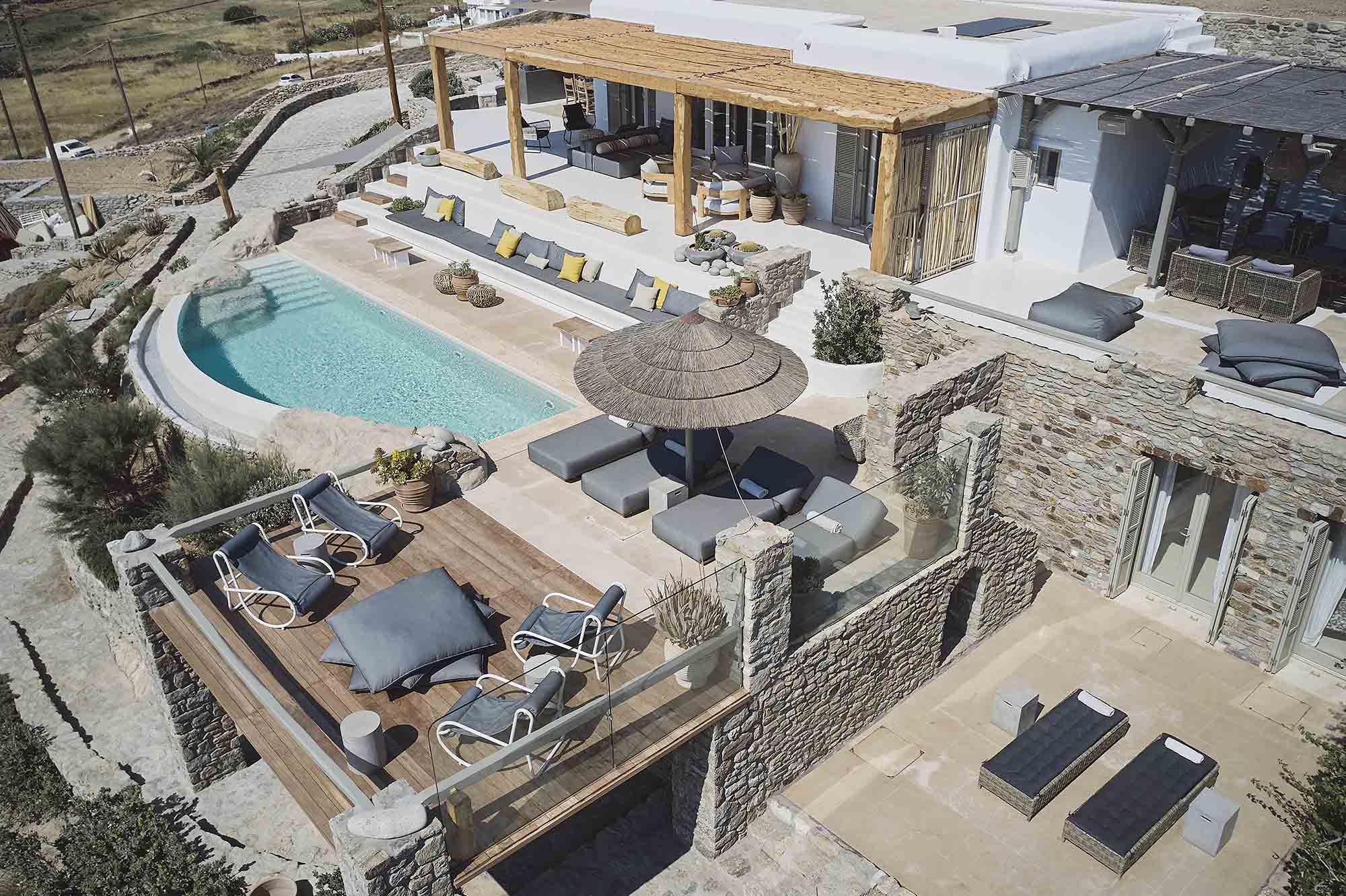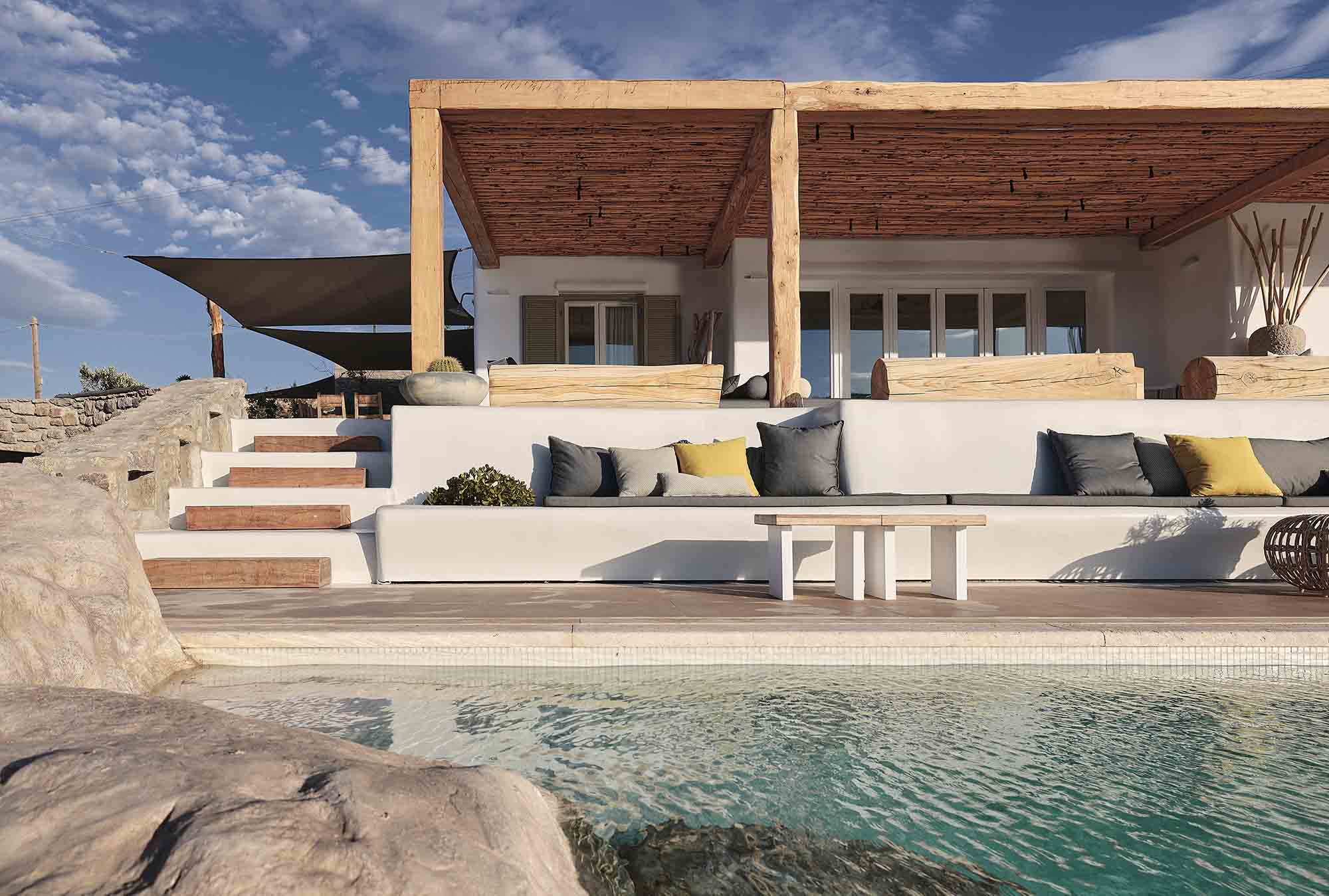 Villa Solana is a luxurious residence, nestled in a stunning location in Ftelia area. Ftelia offers a unique compound of relaxing ambience and natural vegetation, being convenient to a variety of sandy beaches. Only 9 klm away from Mykonos town, this peaceful getaway exudes an absolute Zen feeling.