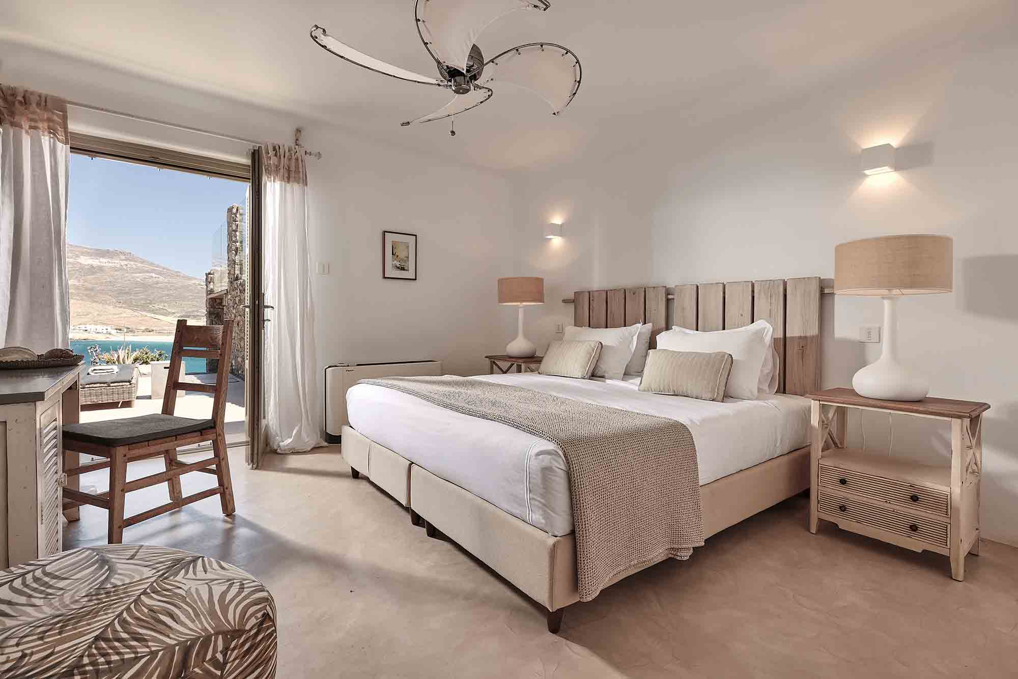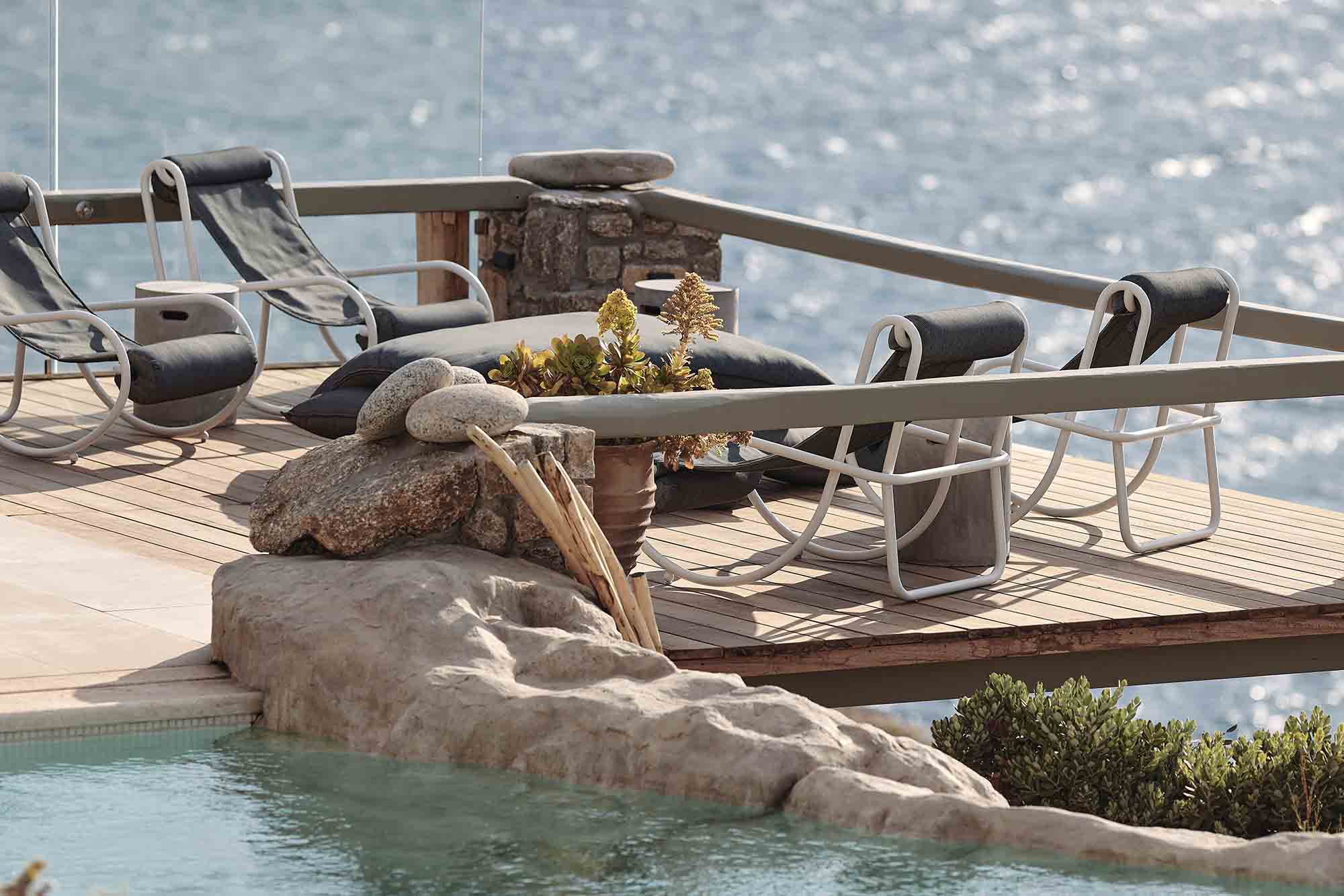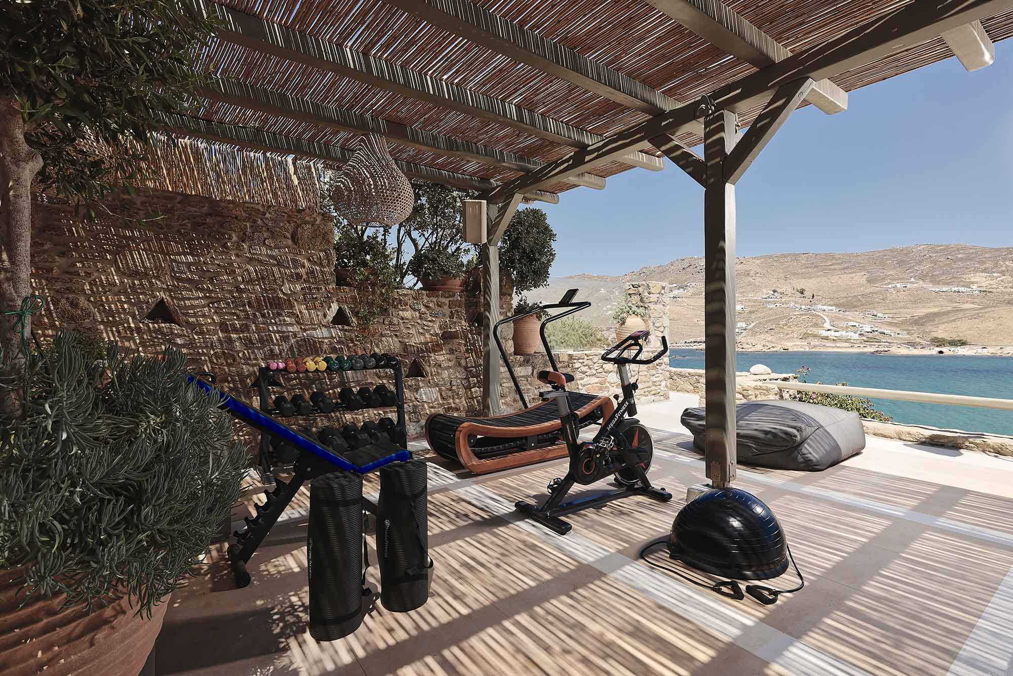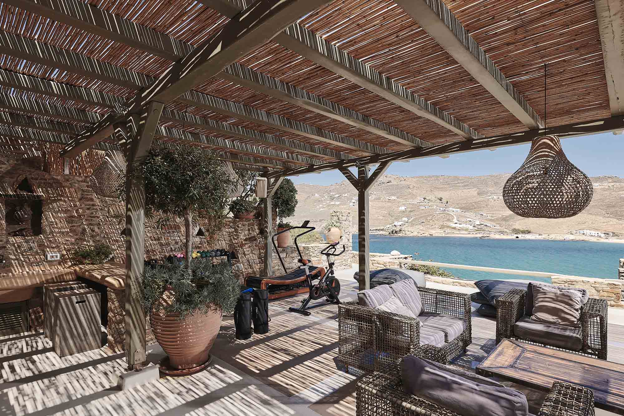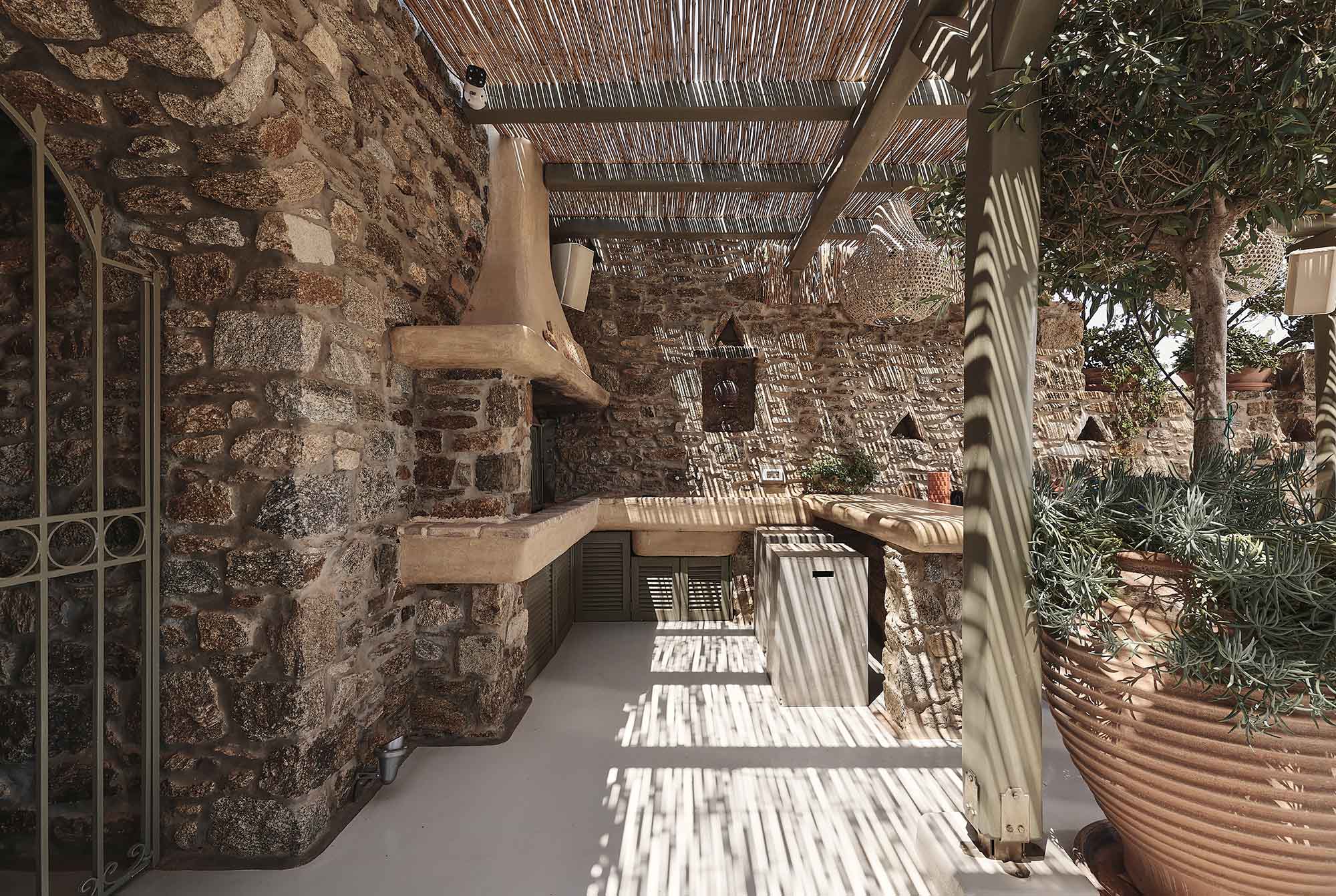 The pristine courtyard, terraces, and surrounding gardens offer a heaven of leisure and serenity, affording many charming spots in which to rest, read, dine, or entertain. Located only a few steps away from the beach, specifically 5 minutes’ walk through the private pathway, which connects villa Solana and Ftelia.