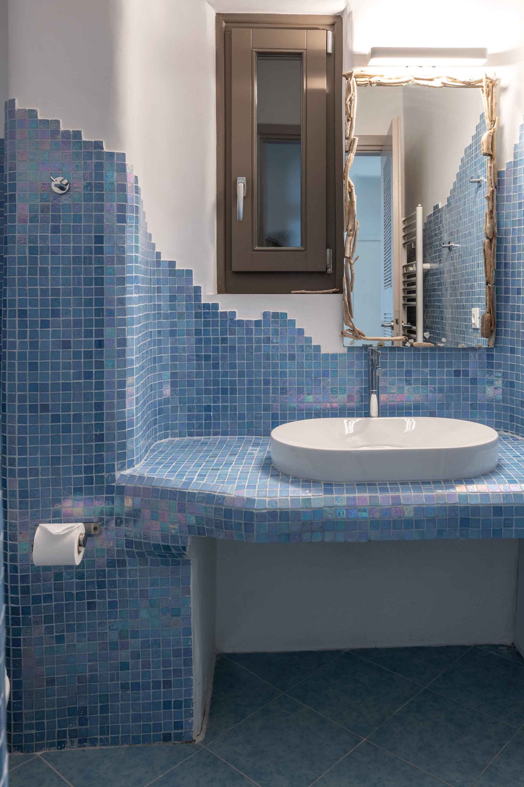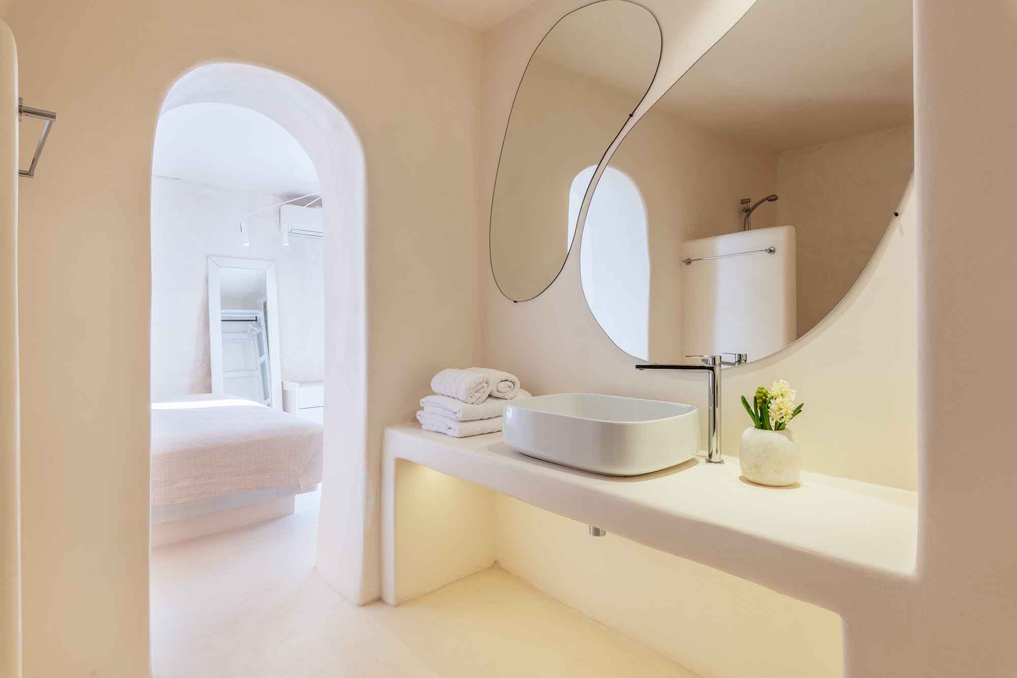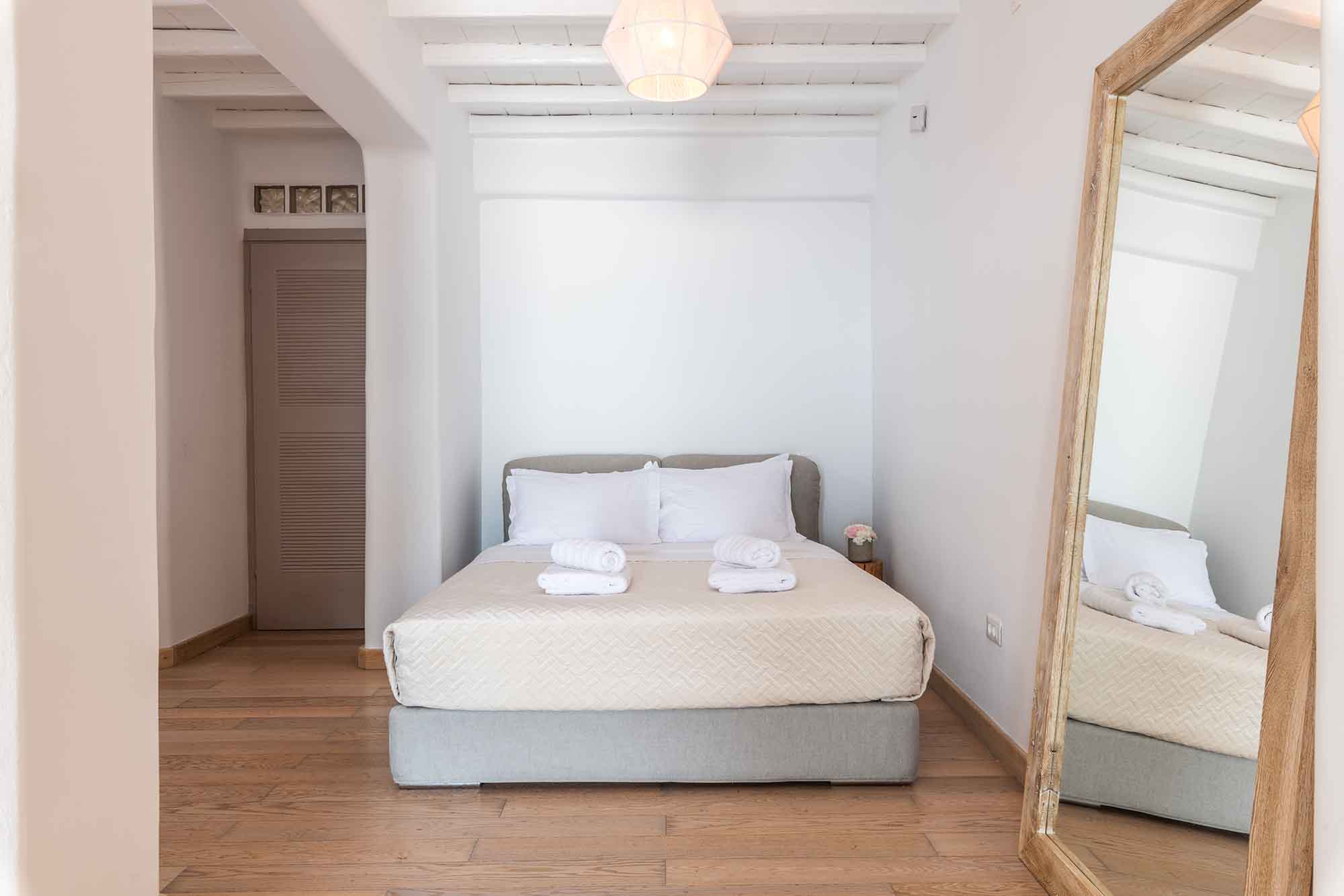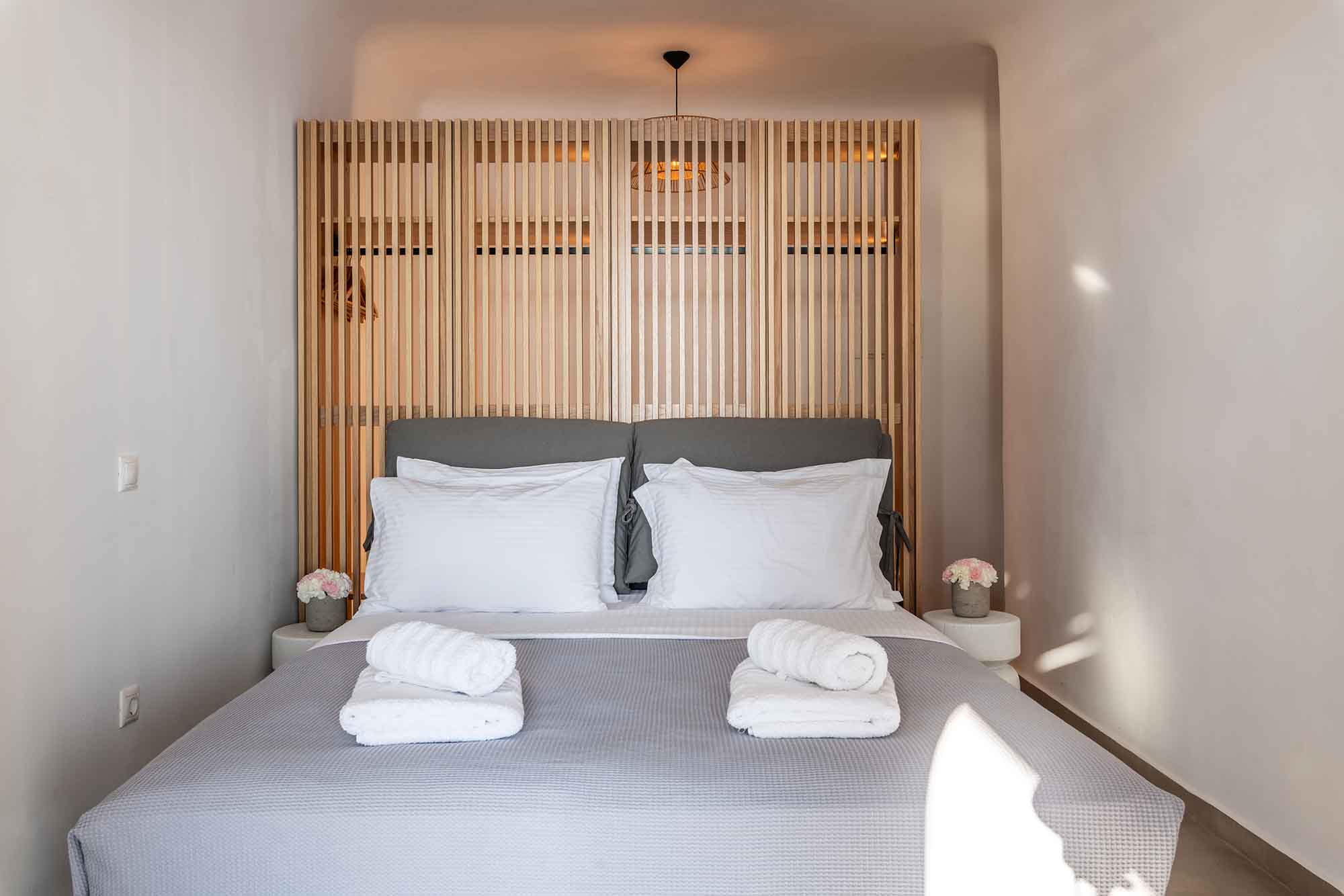 The outdoor areas are designed to appeal to guests with a variety of amenities. The private infinity swimming pool plays a central role and the alfresco jacuzzi is there to offer you relaxation moments with your loved ones. One of the highlights of the space is the pool bar, ready to serve you and your guests at the unforgettable Mykonian nights. The outdoor area includes 2 shaded dining areas, 2 shaded outdoor lounge areas and outdoor gym equipment for you to enjoy.