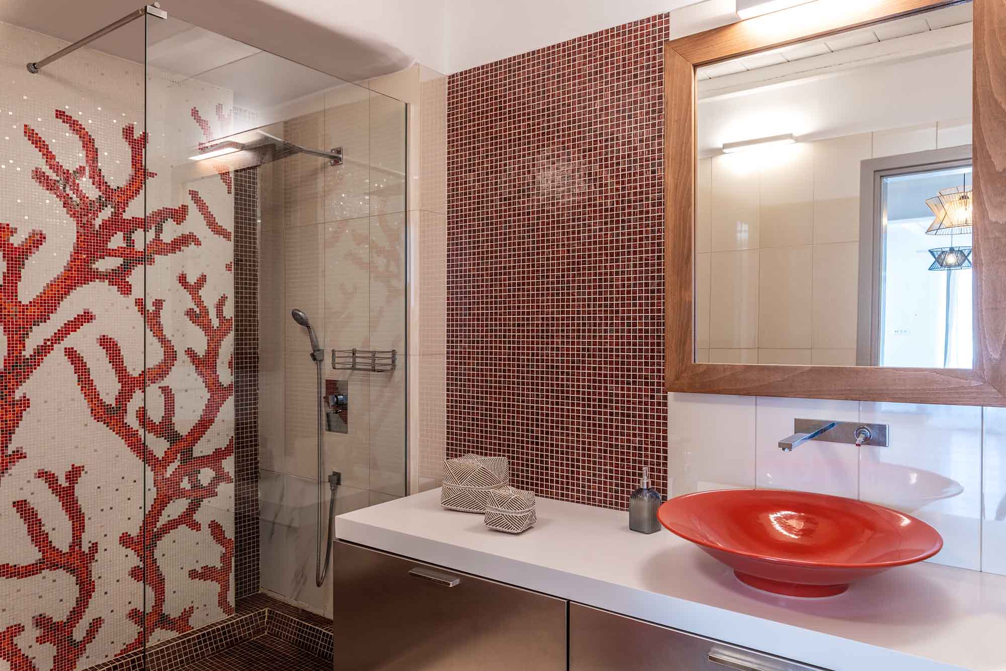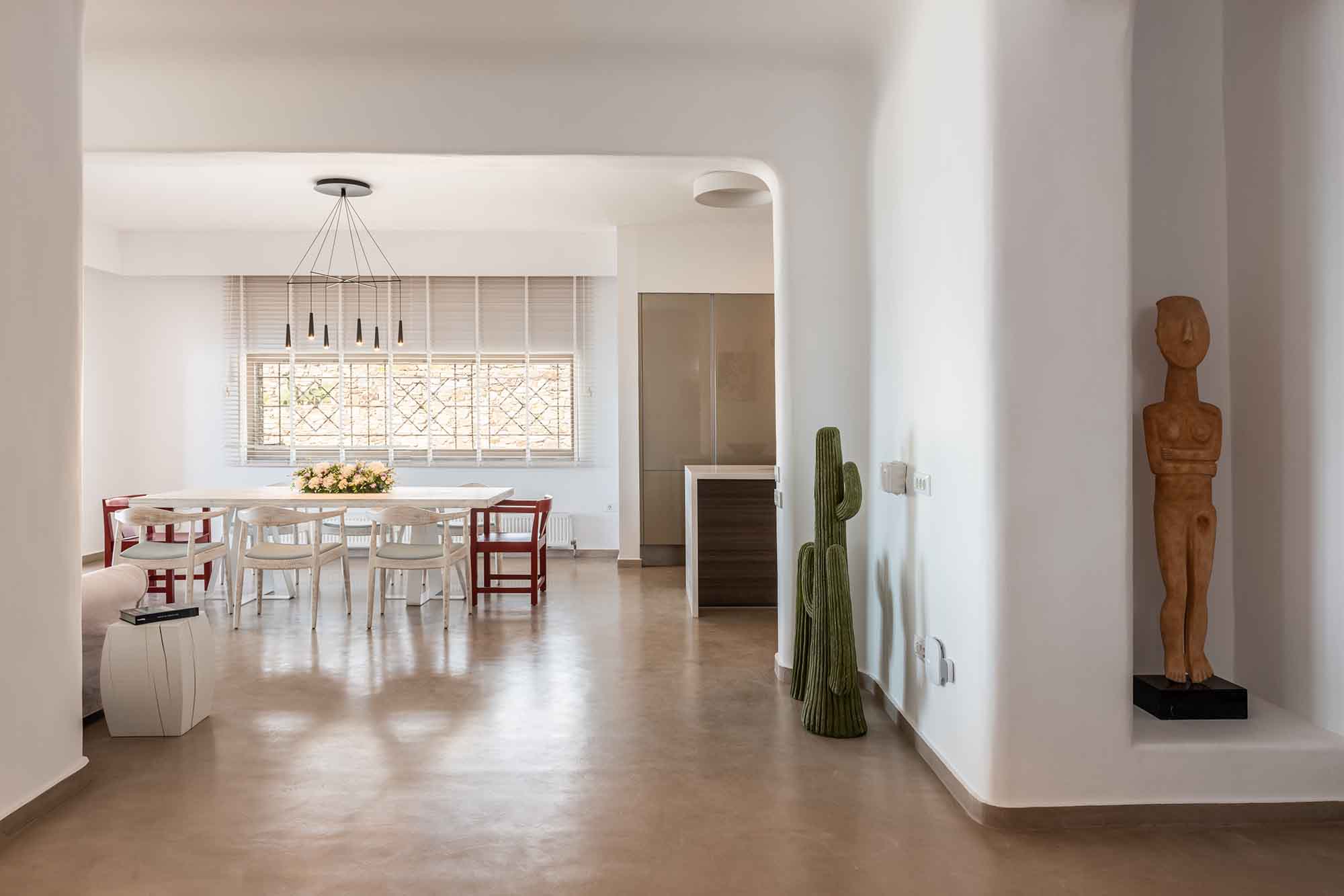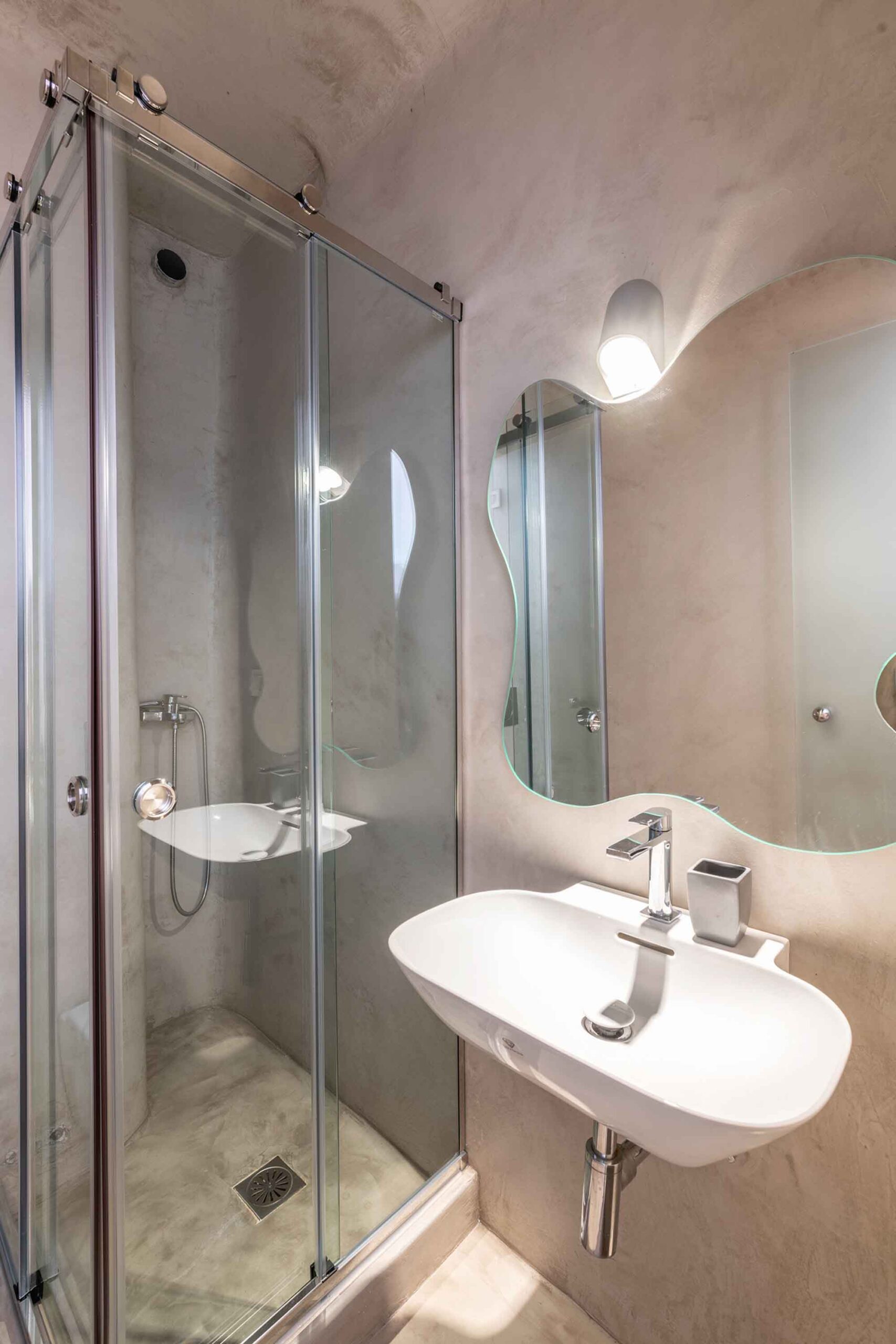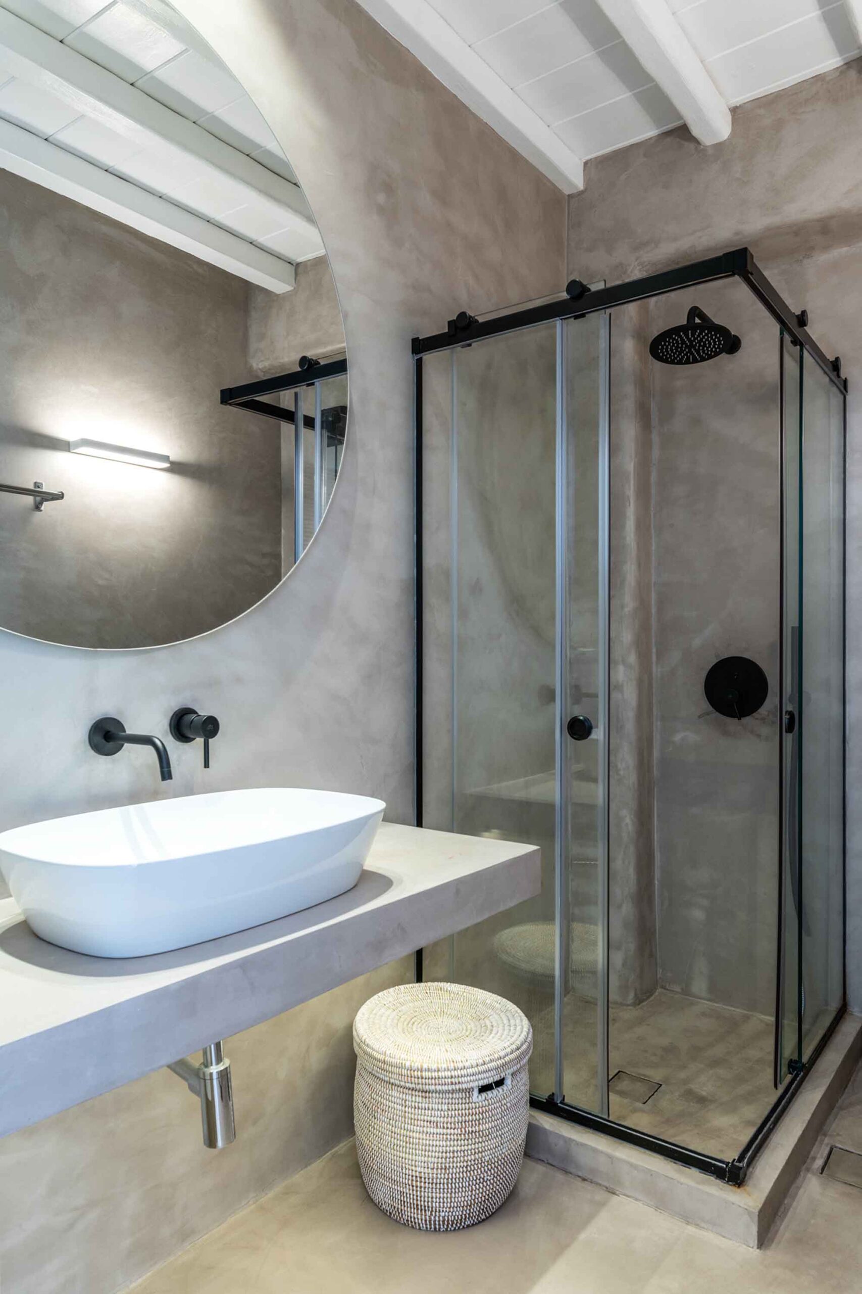 The outdoor areas are designed to appeal to guests with a variety of amenities. The private infinity swimming pool plays a central role and the alfresco jacuzzi is there to offer you relaxation moments with your loved ones. One of the highlights of the space is the pool bar, ready to serve you and your guests at the unforgettable Mykonian nights. The outdoor area includes 2 shaded dining areas, 2 shaded outdoor lounge areas and outdoor gym equipment for you to enjoy.