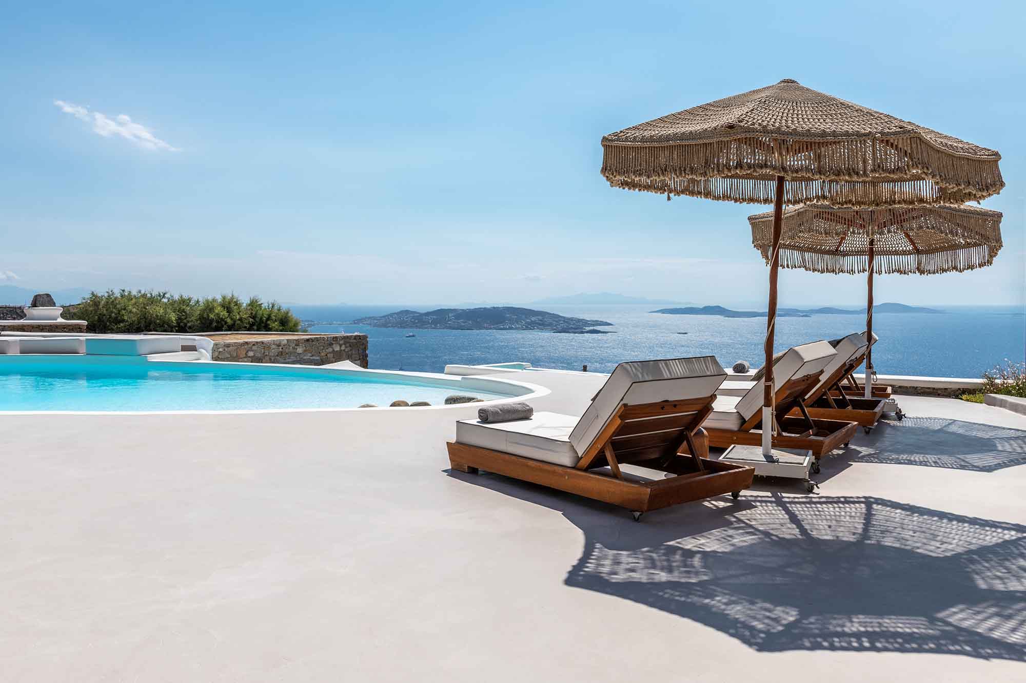 Villa Sollar Three is located in the area of Fanari offering gasp-worthy views of Aegean sea and the famous sunsets. The location allows for great privacy while being only a short drive from the nightlife of Mykonos Town and all the famous restaurants.