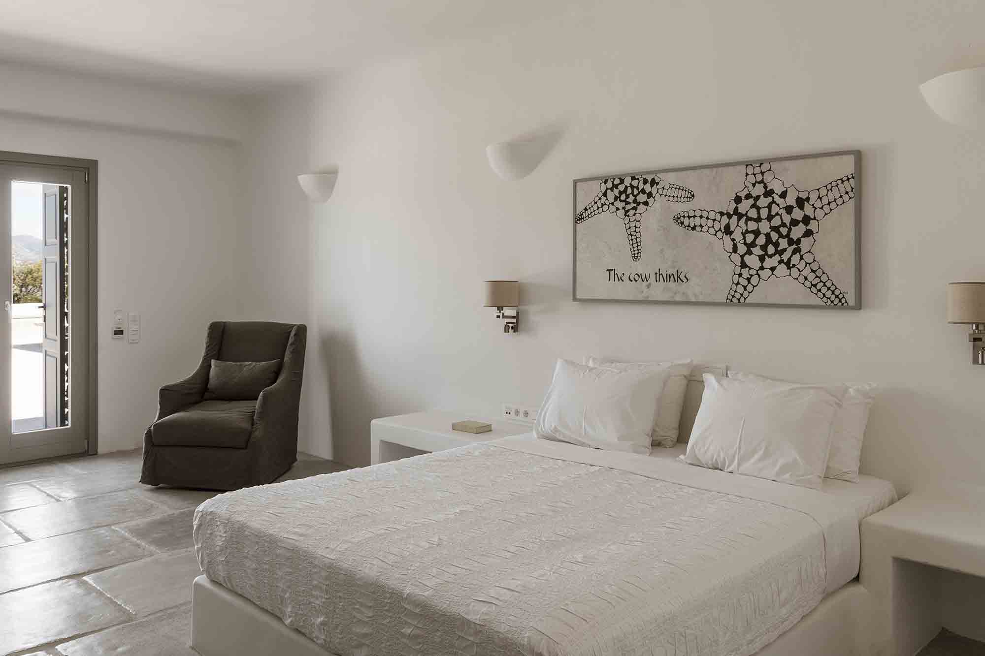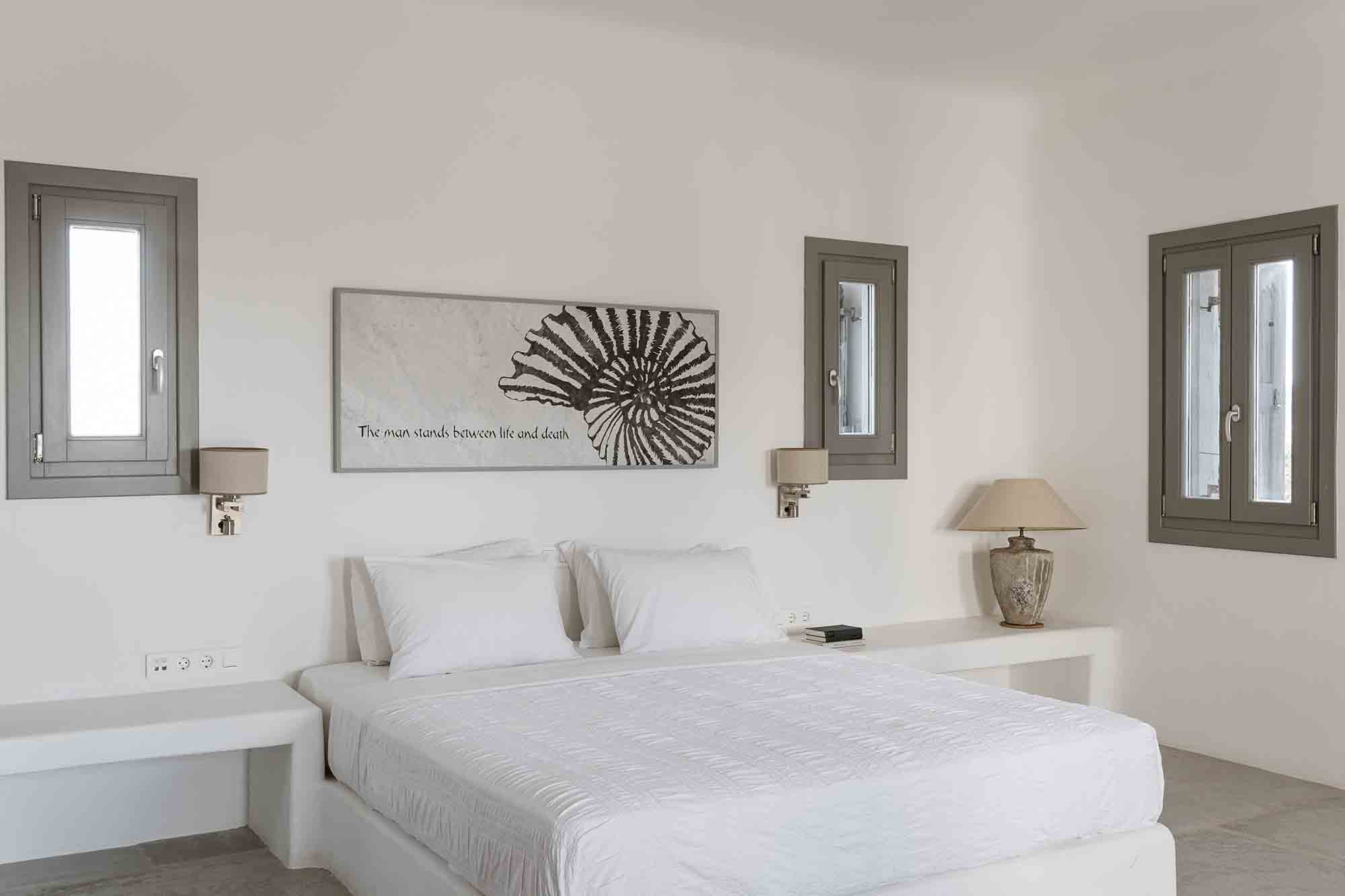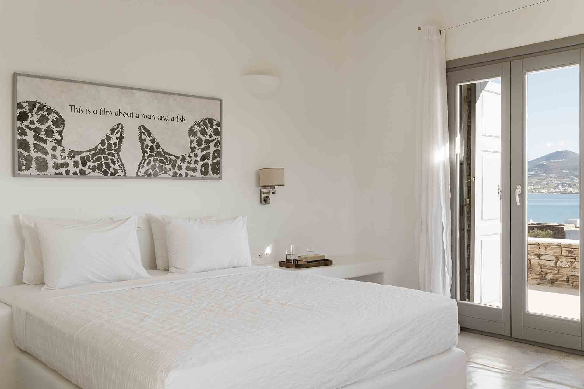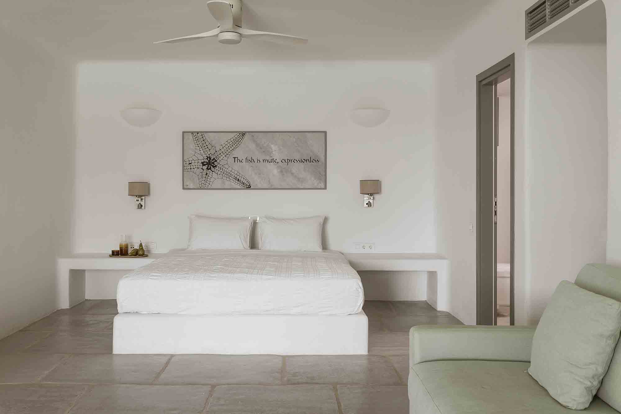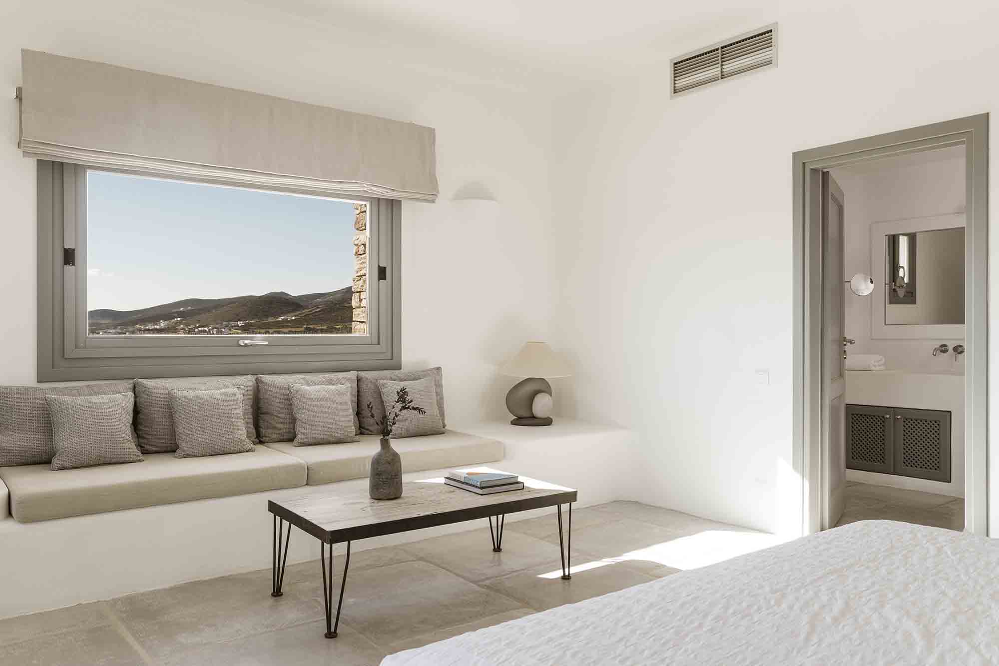Light Cycladic design blends with ample interiors. We love the living spaces where the choice of furniture and décor enhances the home away from home ambience. Bedrooms provide great privacy while styled in expressions of white and natural colors enhancing a freshness and comfort.