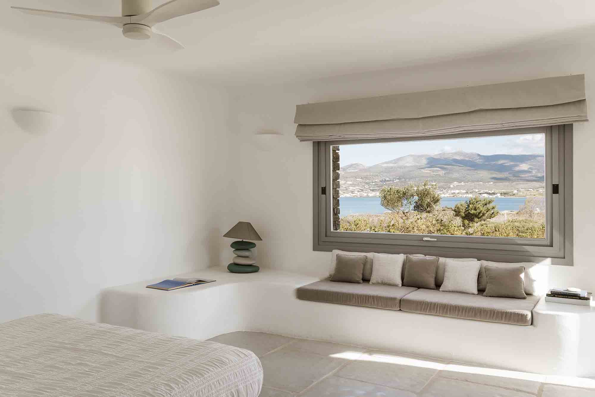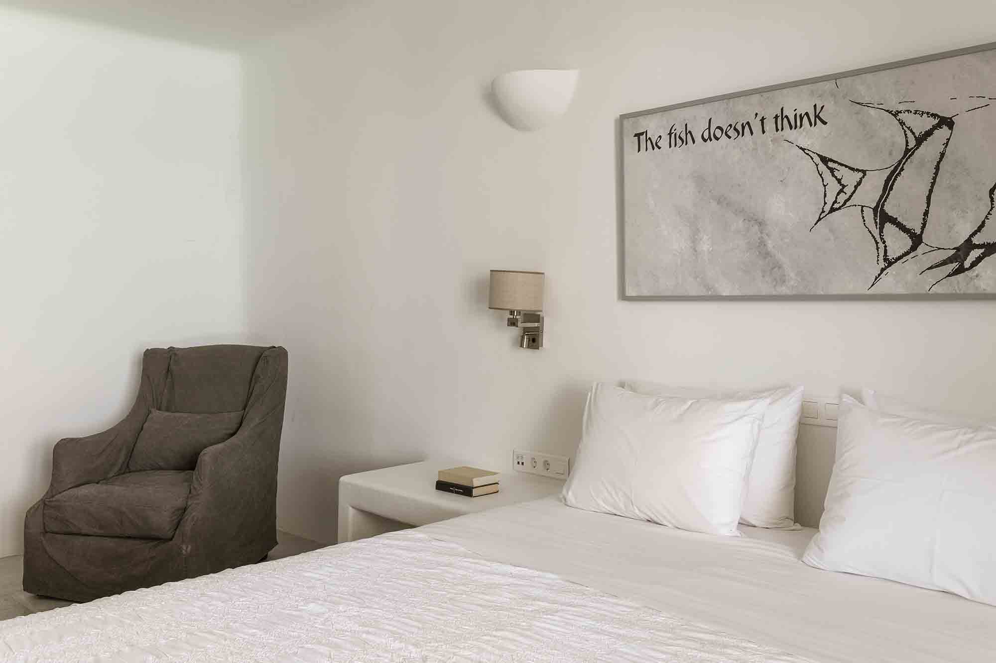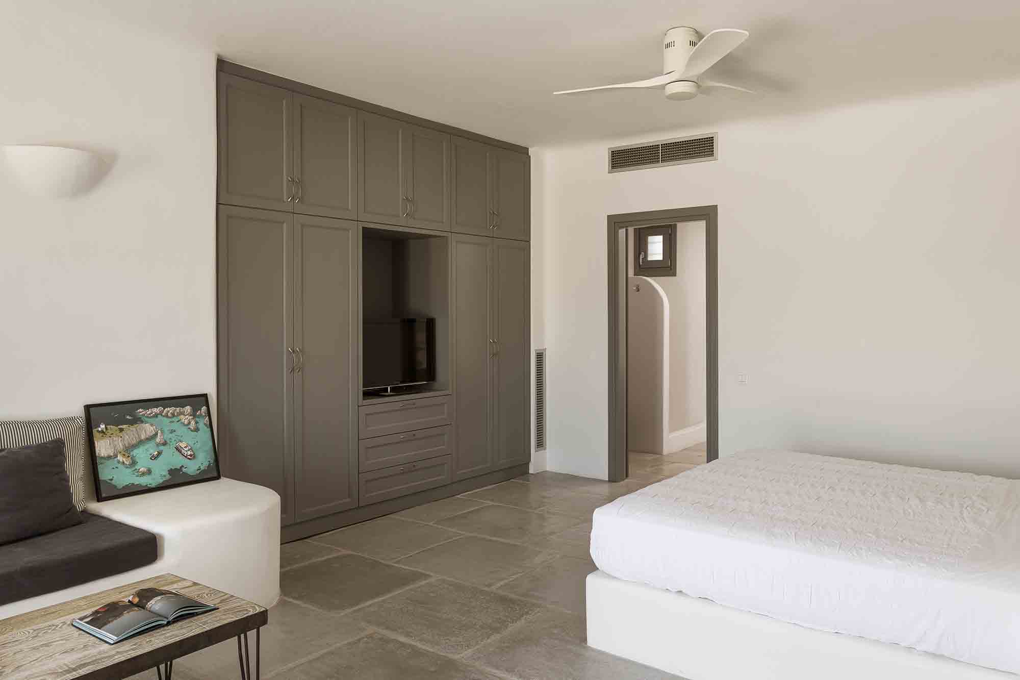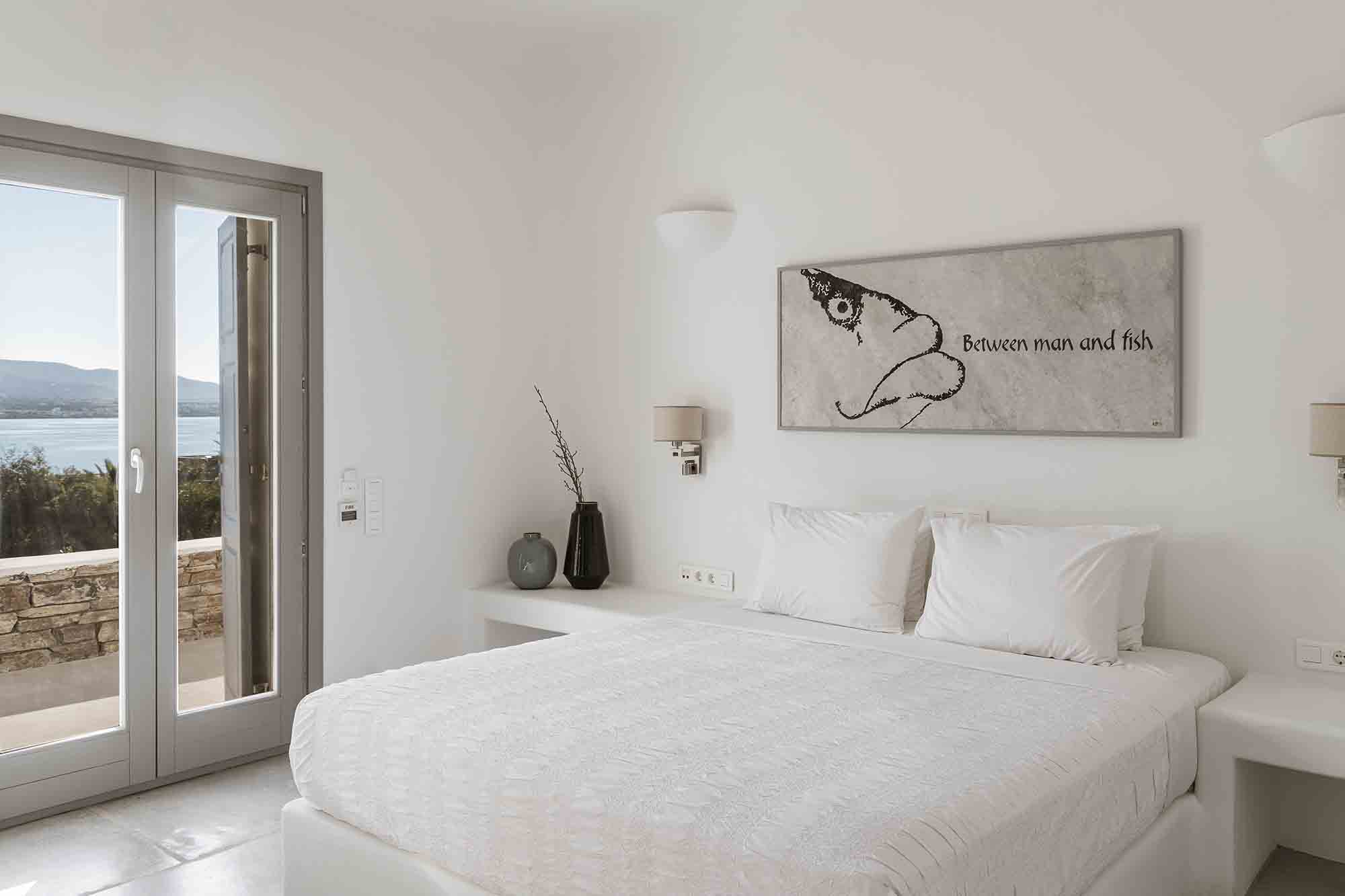 Light Cycladic design blends with ample interiors. We love the living spaces where the choice of furniture and décor enhances the home away from home ambience. Bedrooms provide great privacy while styled in expressions of white and natural colors enhancing a freshness and comfort.