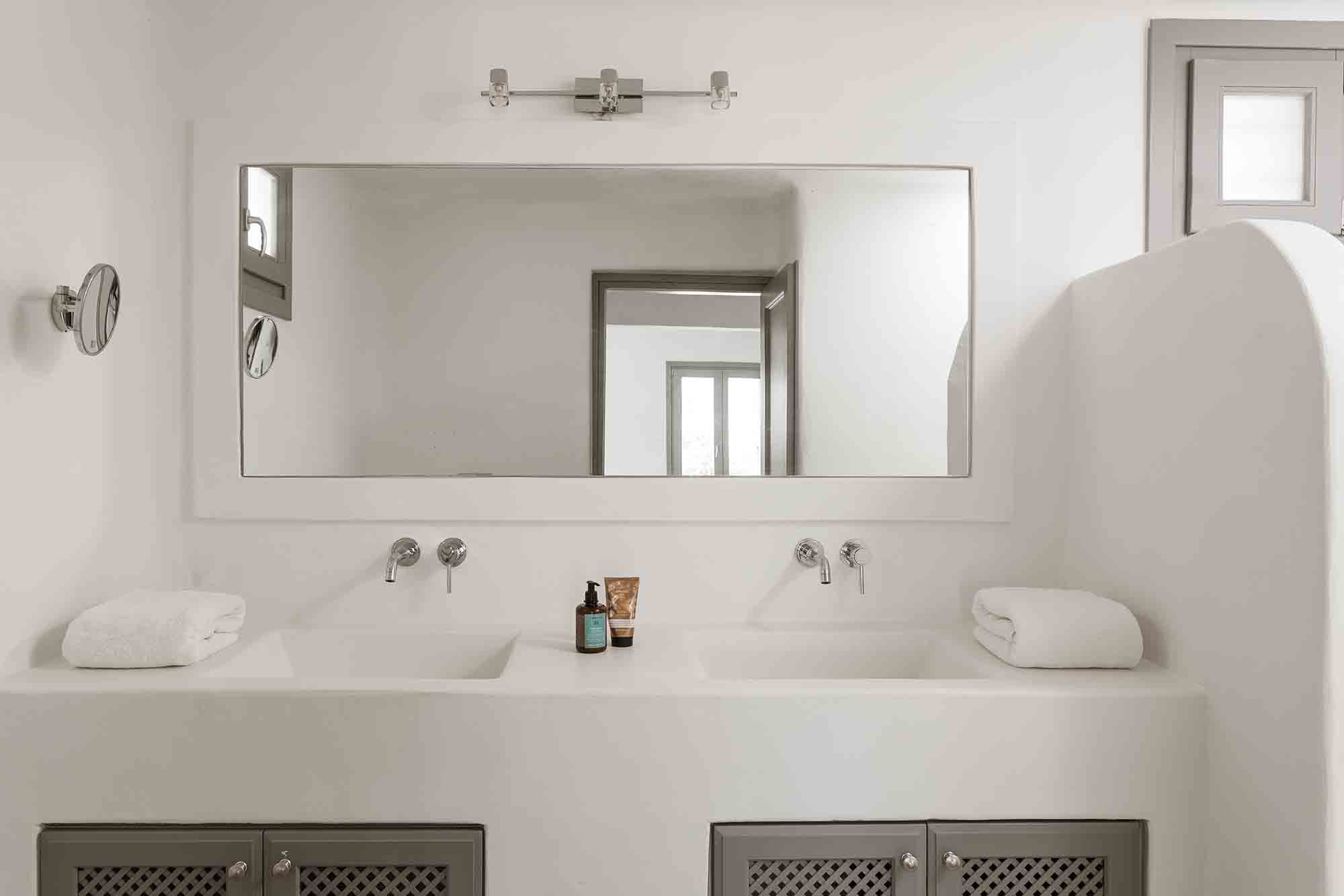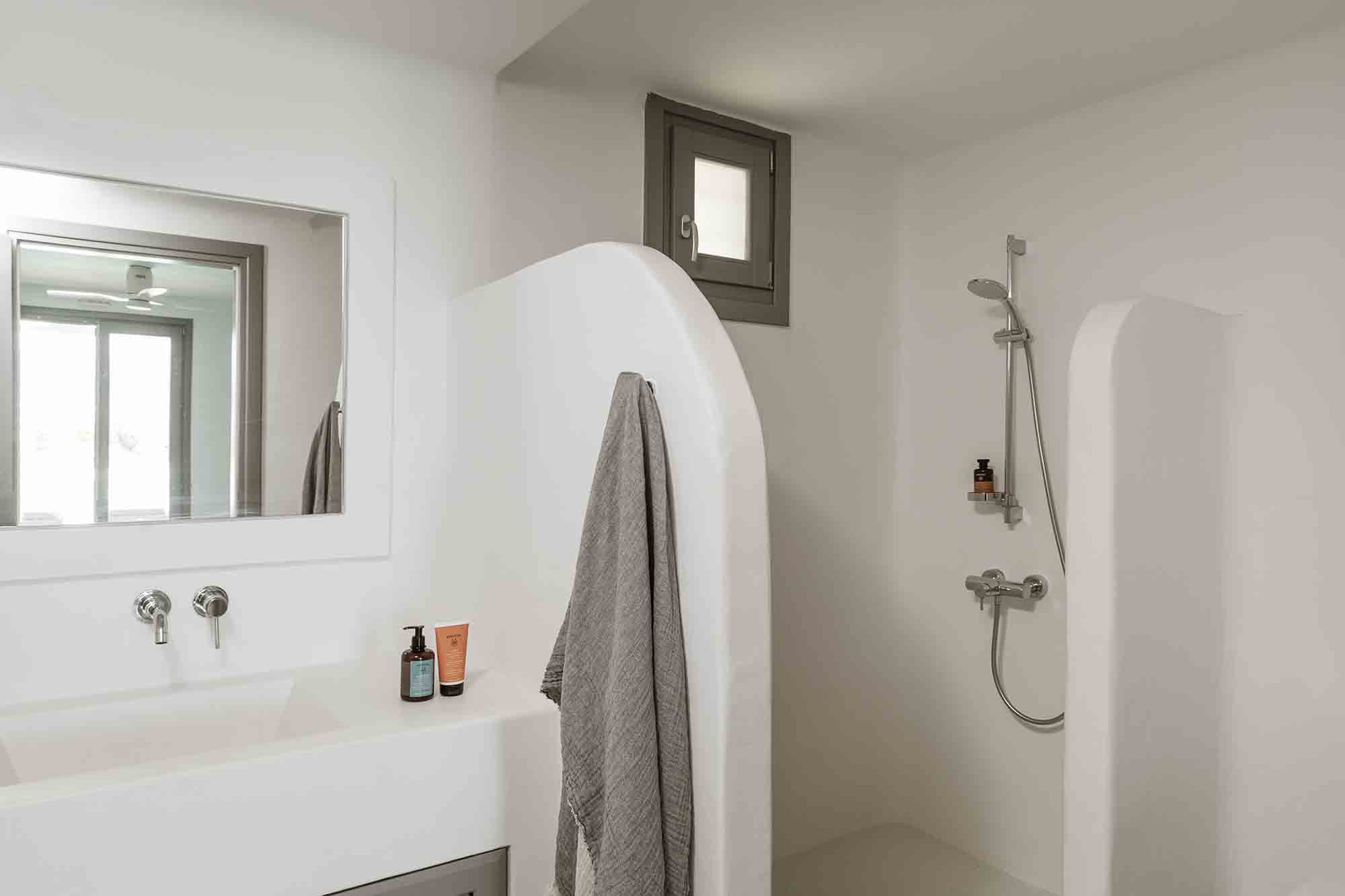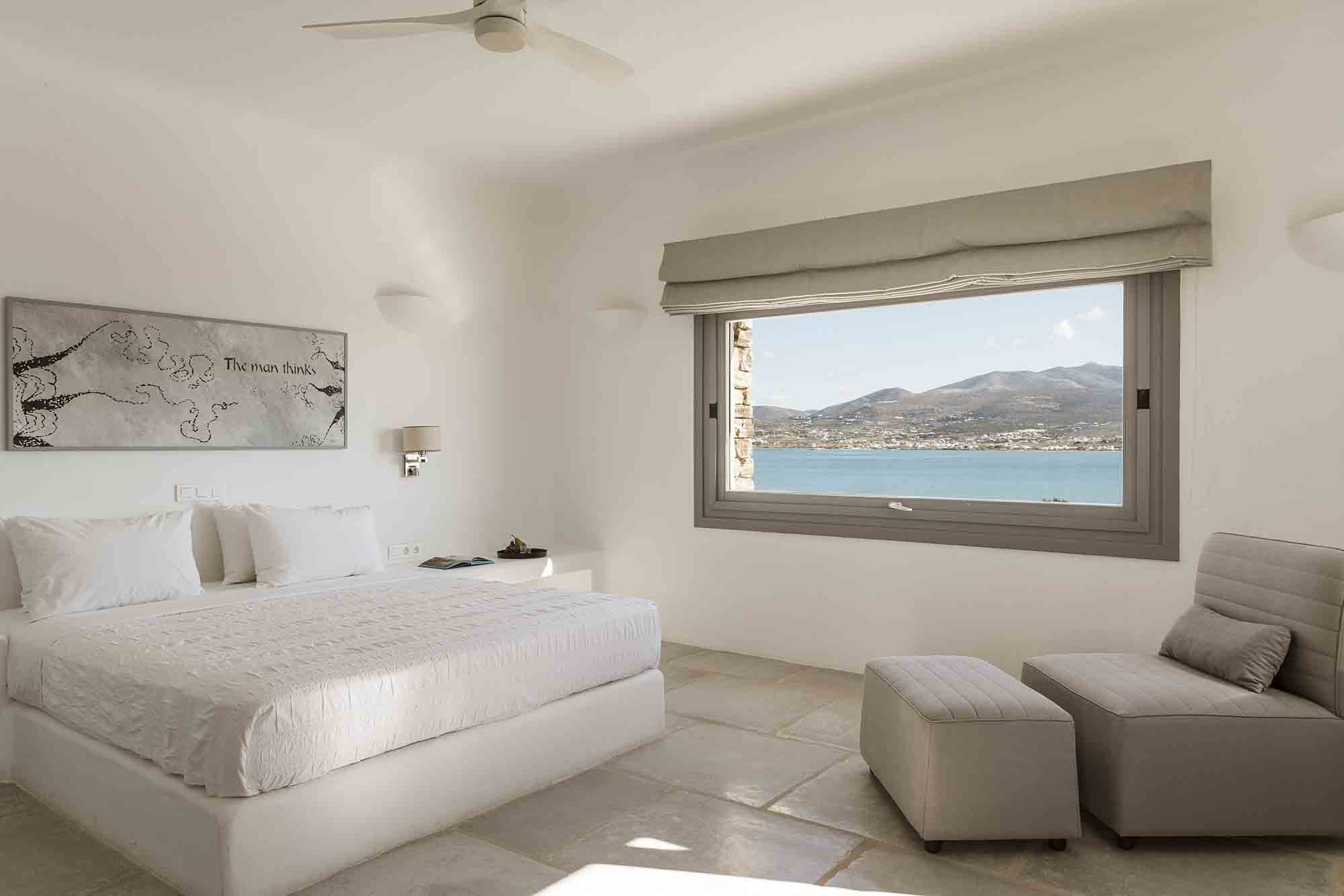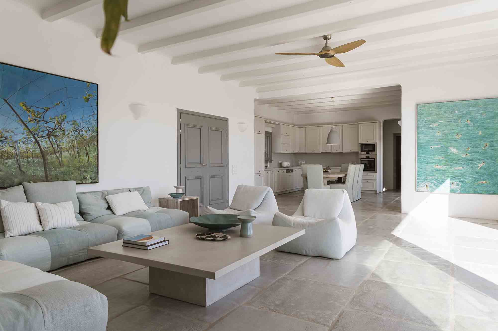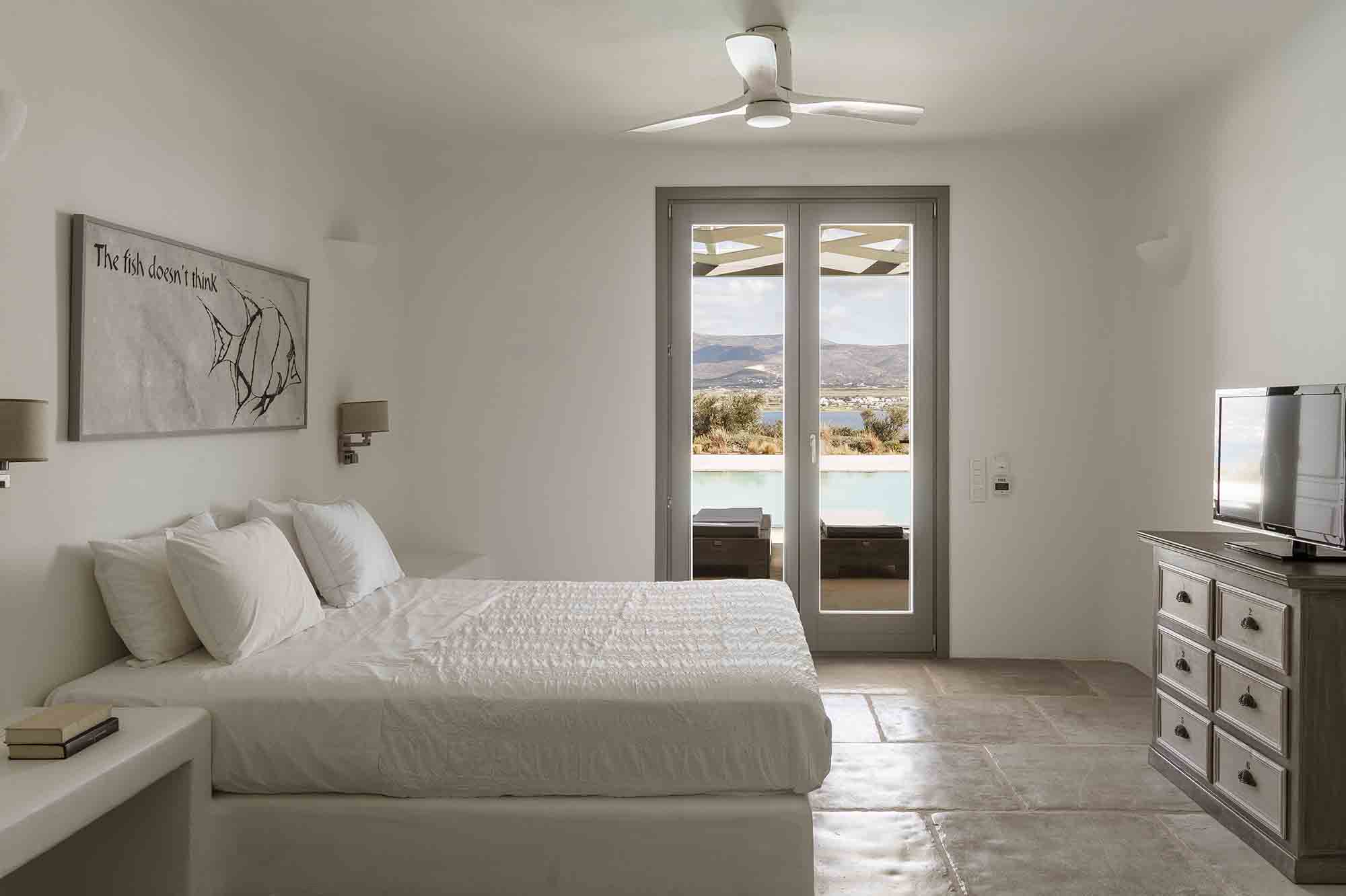 Light Cycladic design blends with ample interiors. We love the living spaces where the choice of furniture and décor enhances the home away from home ambience. Bedrooms provide great privacy while styled in expressions of white and natural colors enhancing a freshness and comfort.