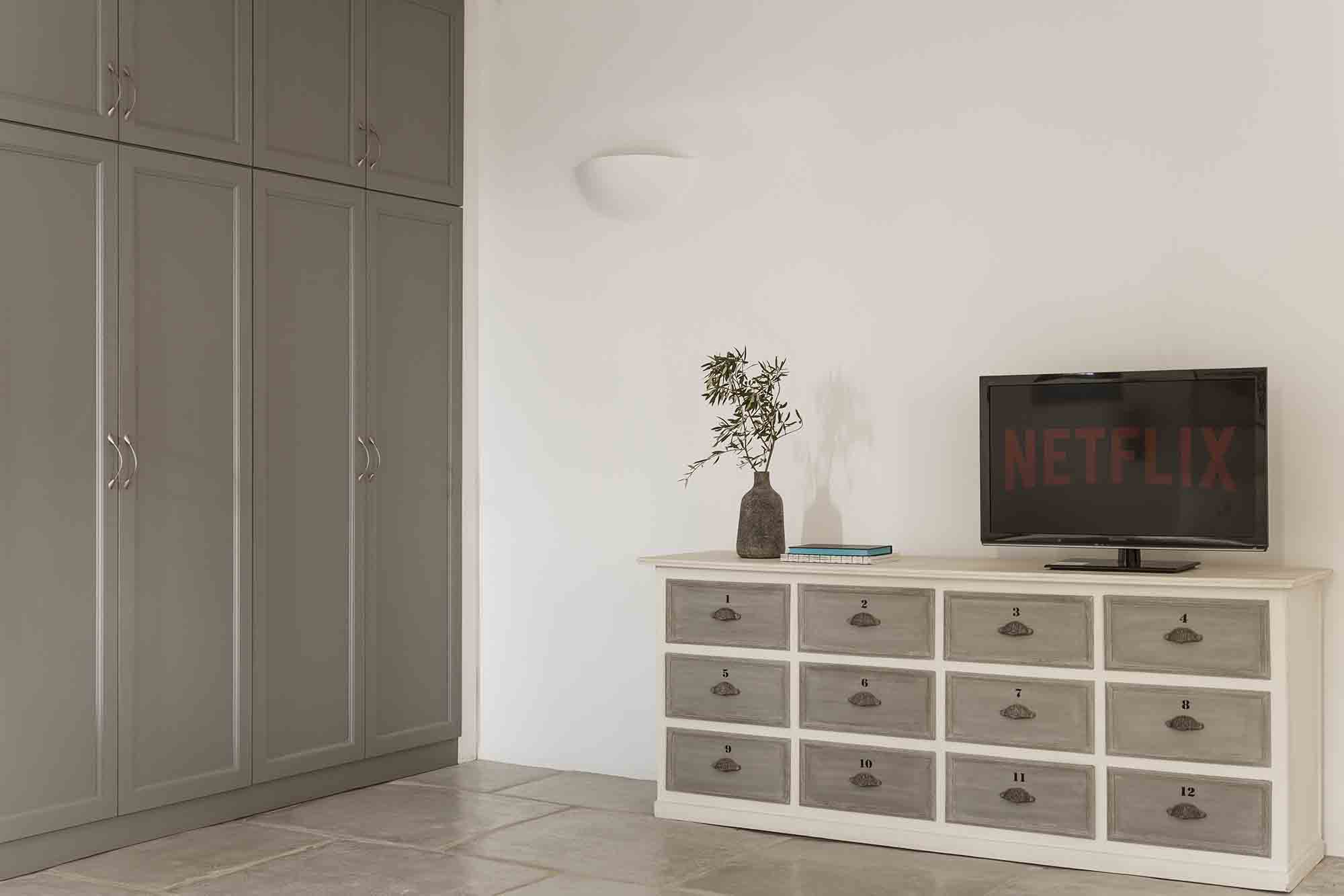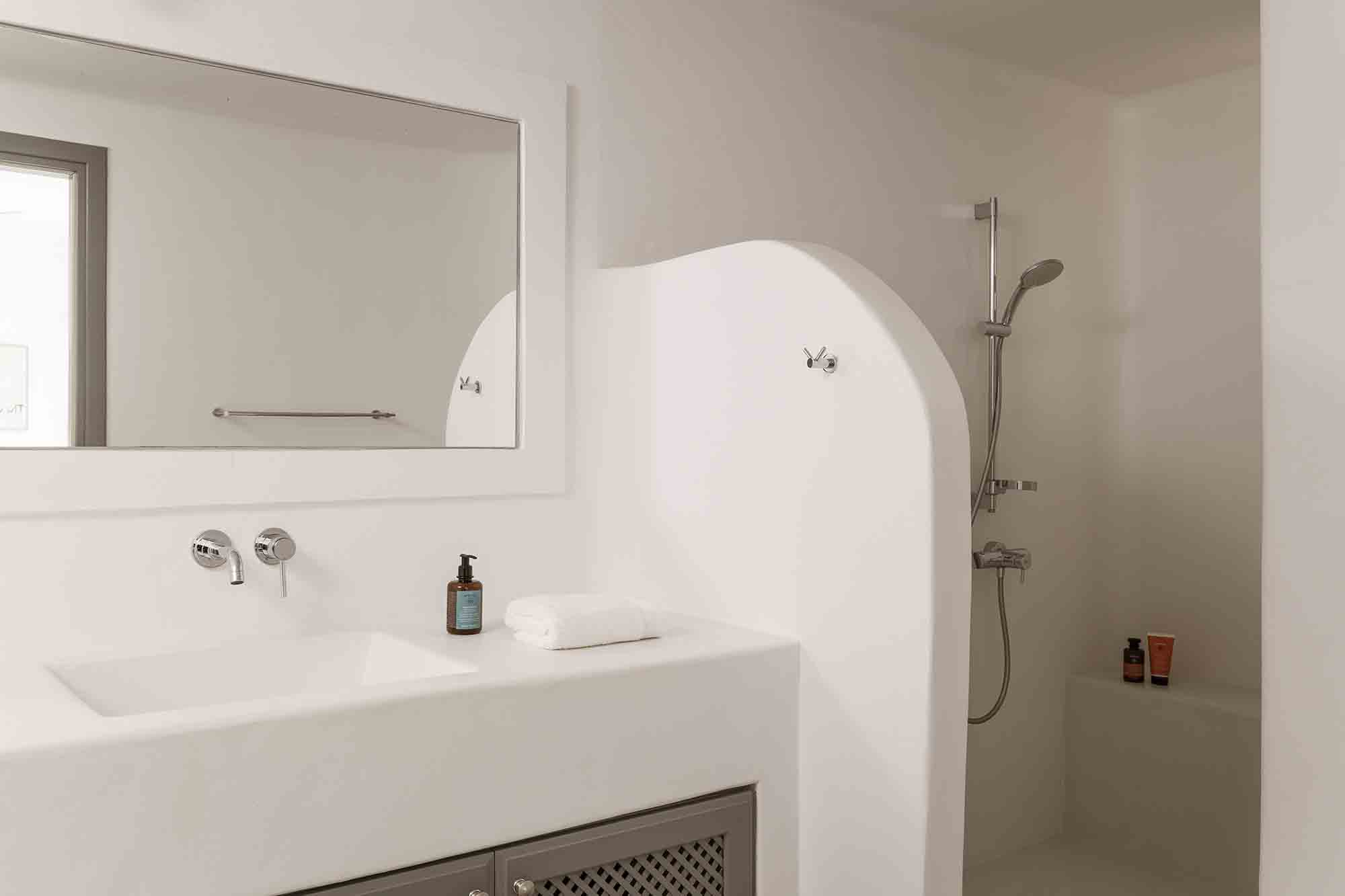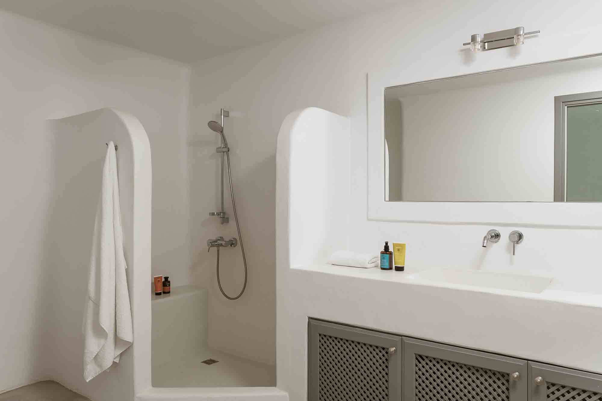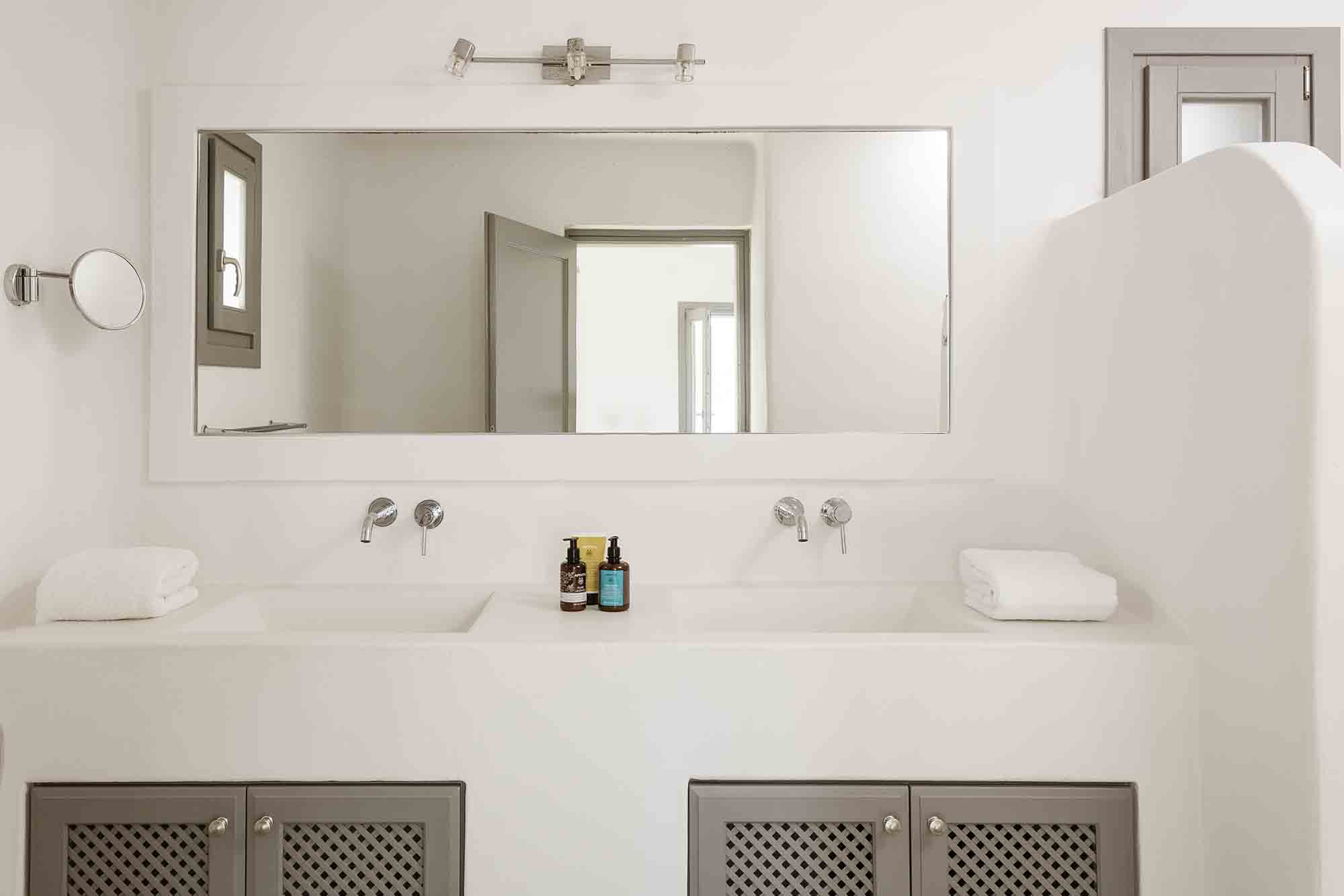 Light Cycladic design blends with ample interiors. We love the living spaces where the choice of furniture and décor enhances the home away from home ambience. Bedrooms provide great privacy while styled in expressions of white and natural colors enhancing a freshness and comfort.
