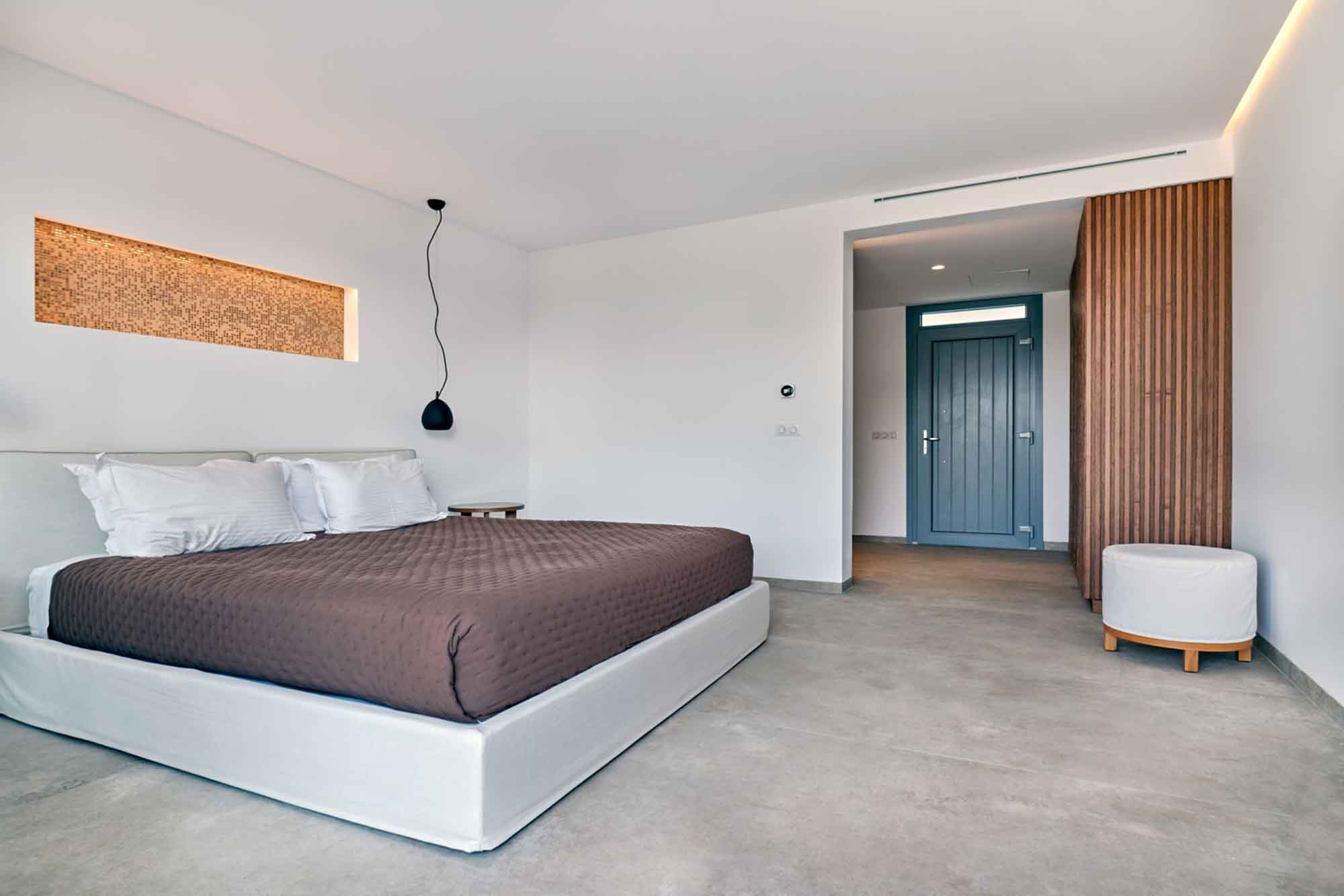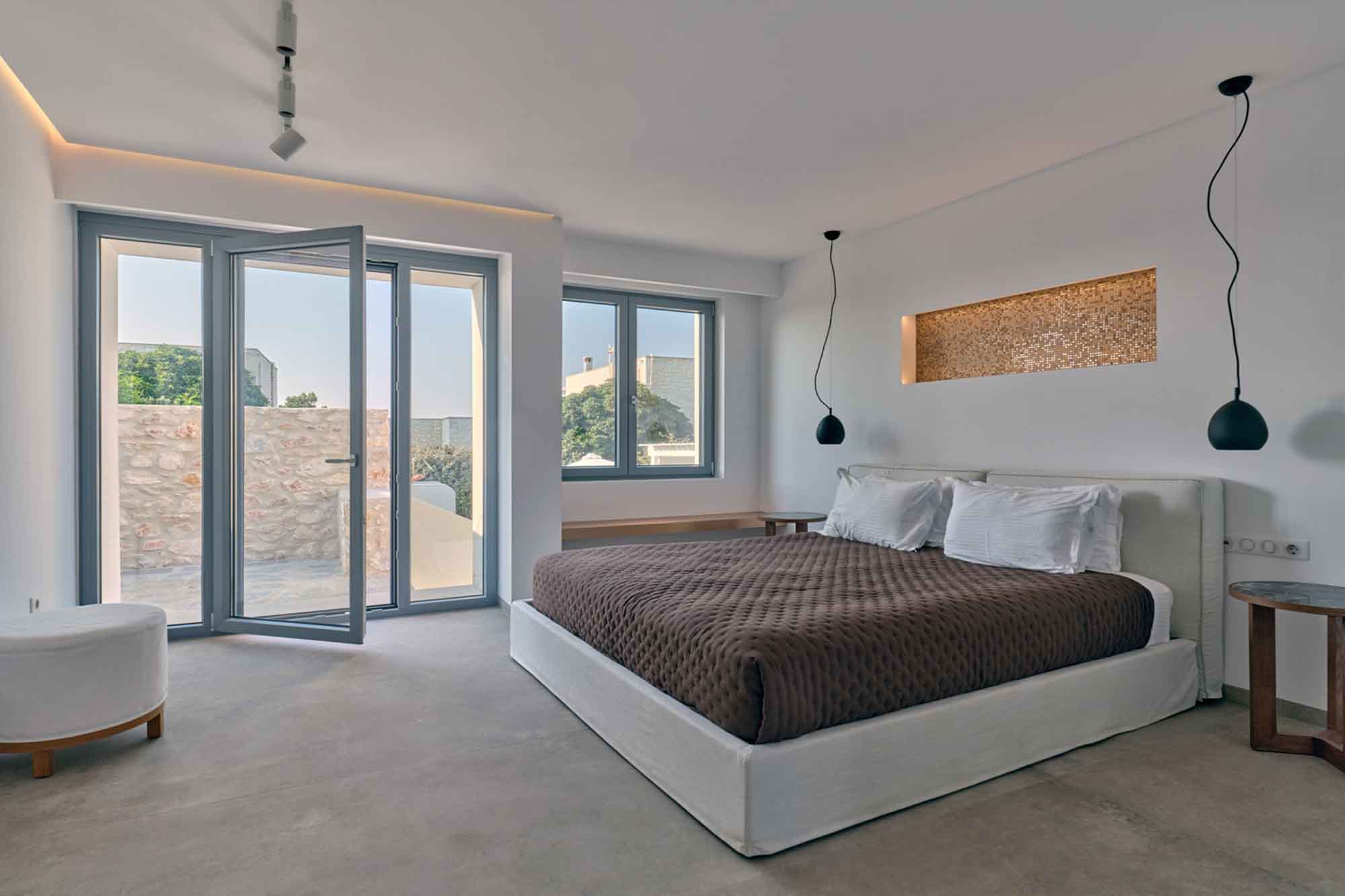The top floor is home to the luxurious Master Bedroom, which includes a private living area, an en-suite bathroom, and a secluded balcony offering breathtaking views of the bay and Naxos Island—a serene haven for relaxation and admiration of the stunning surroundings.