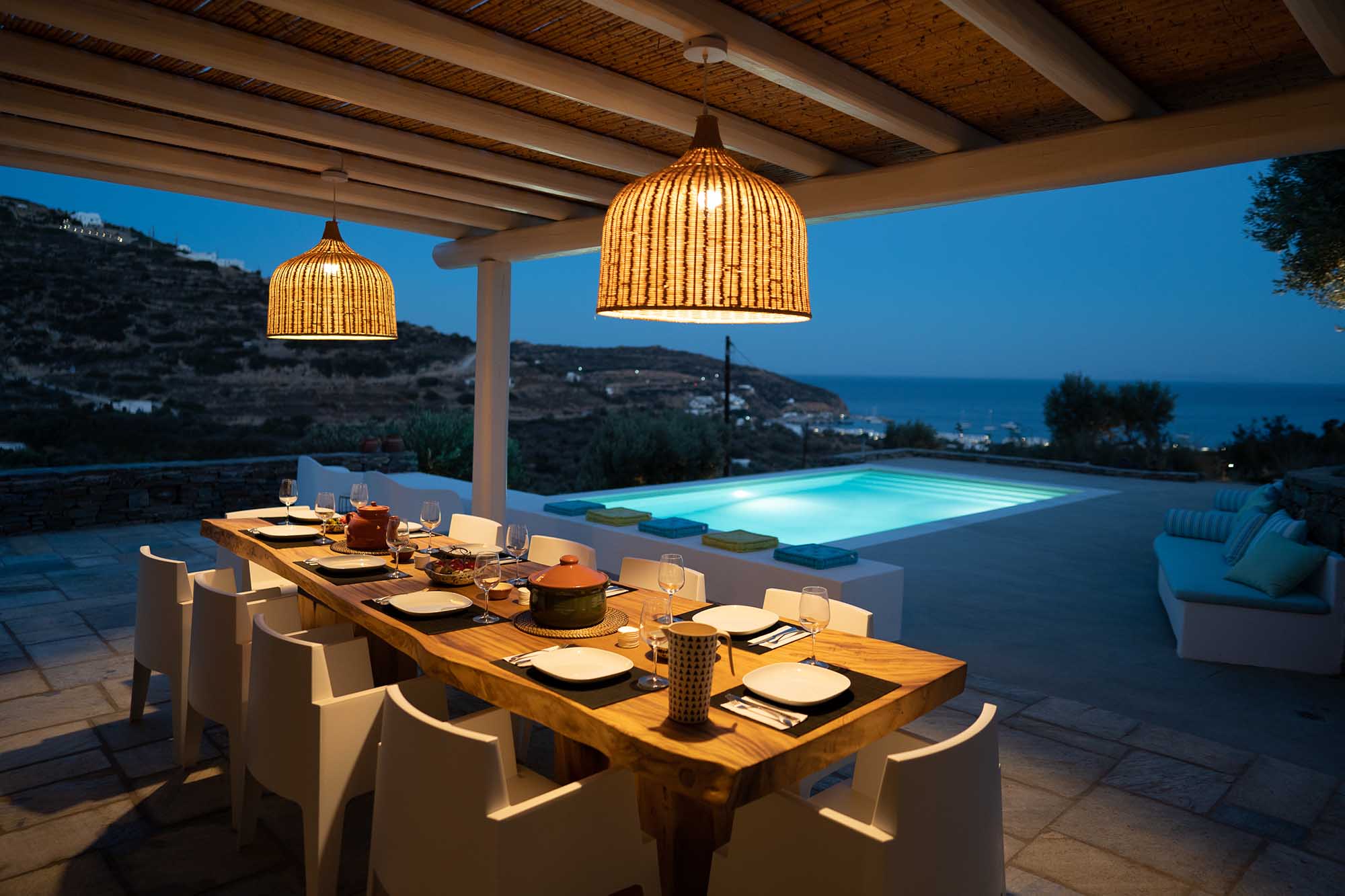 Villa Valentina is decorated in a modern style but definitely remains in total harmony with the traditional aesthetic of the place. From its spacious living room indoors and outdoors, guests will enjoy amazing views of the Argolic Sea and the magnificent sunset. Most importantly, only few steps below the garden area, we walk towards the private beach of the house, a secret paradise. From this beach private boats can take you to the islands around, which prove a very easy access.