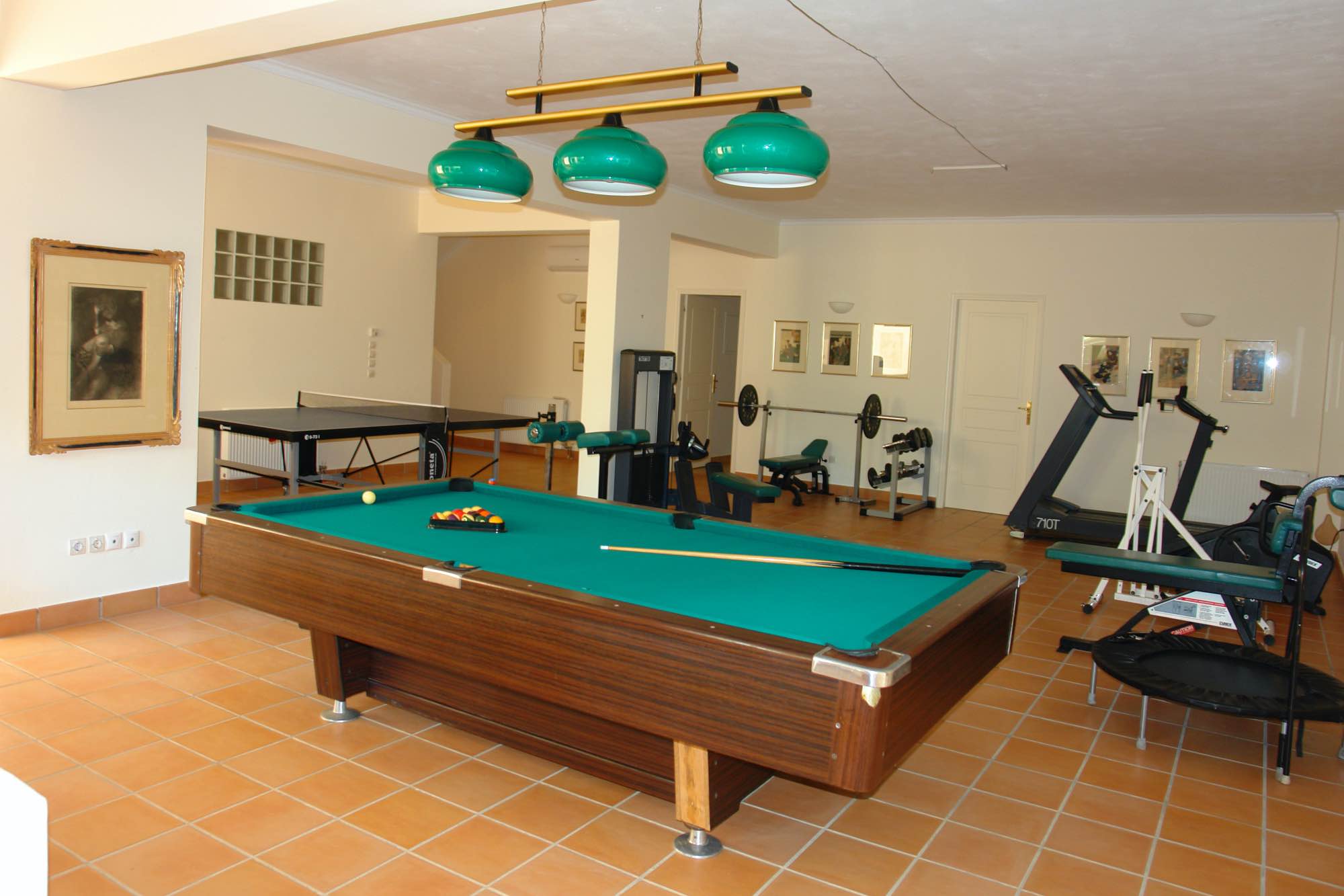 - Playroom with American Billiard table, Table Tennis & CYBEX gym equipment, Bar, TV/DVD seating area