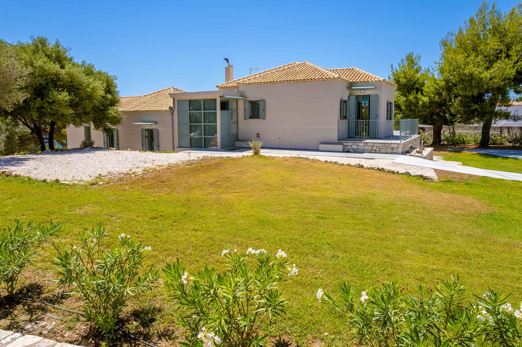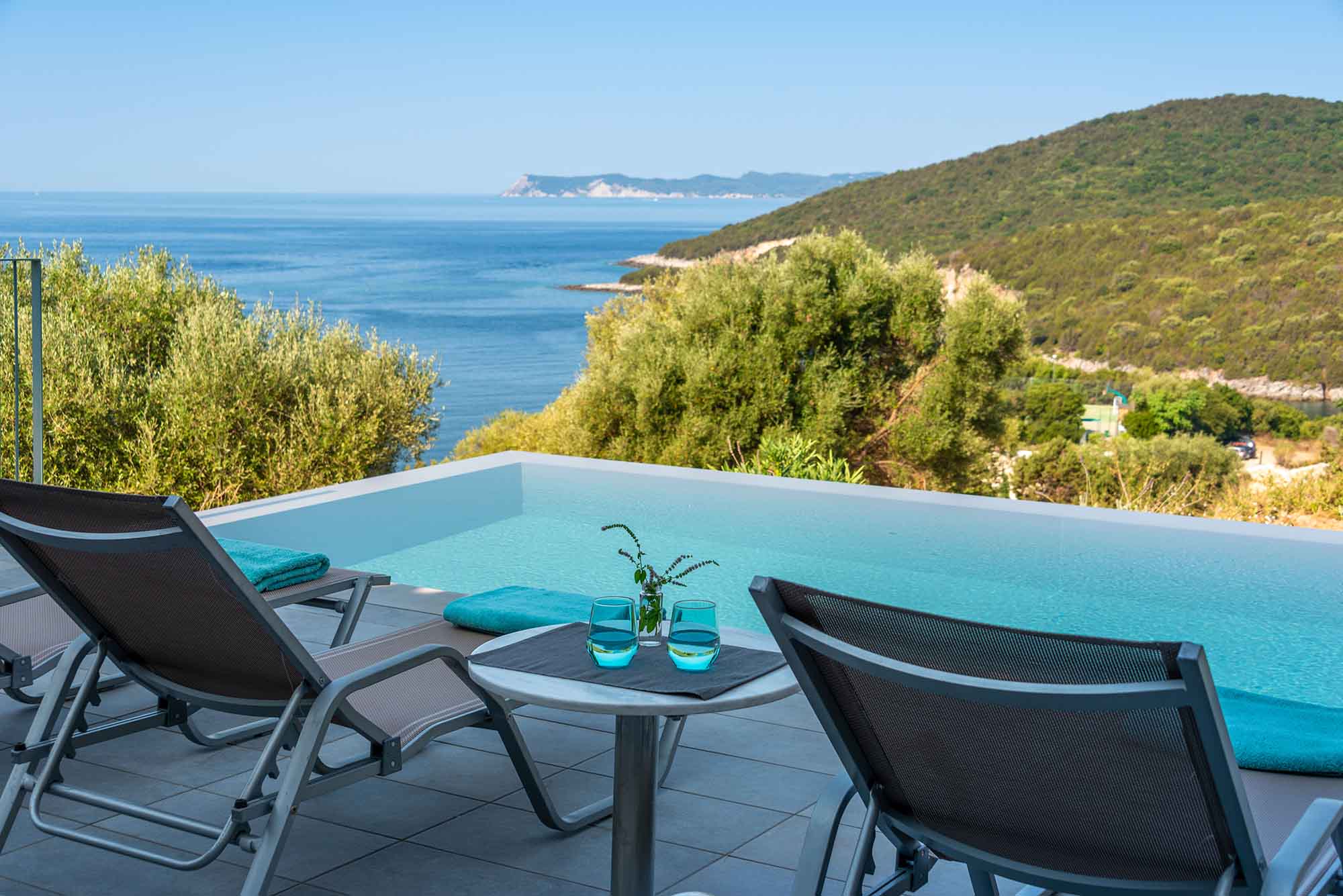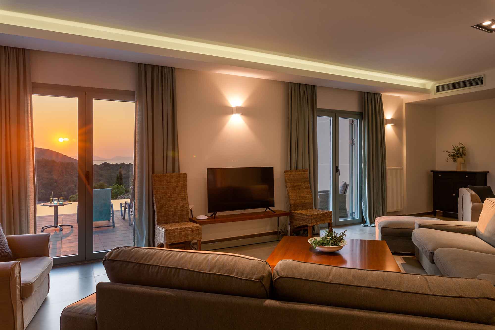 Outside, Villa Venedikty transcends the ordinary with a divine dining setup complemented by a pristine private pool. Lounge on our relaxing sunbeds for a delightful siesta or bask in the glorious Greek sun. Our fully equipped gas BBQ is ready to add a sizzle to your alfresco dining experience as you witness the most enchanting sunset, with the backdrops of Paxos and Corfu enhancing the panorama.