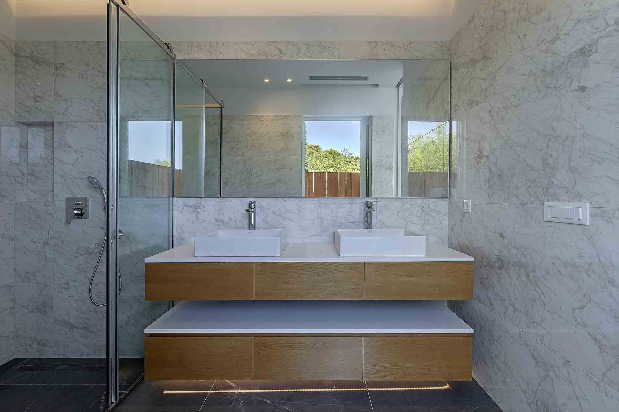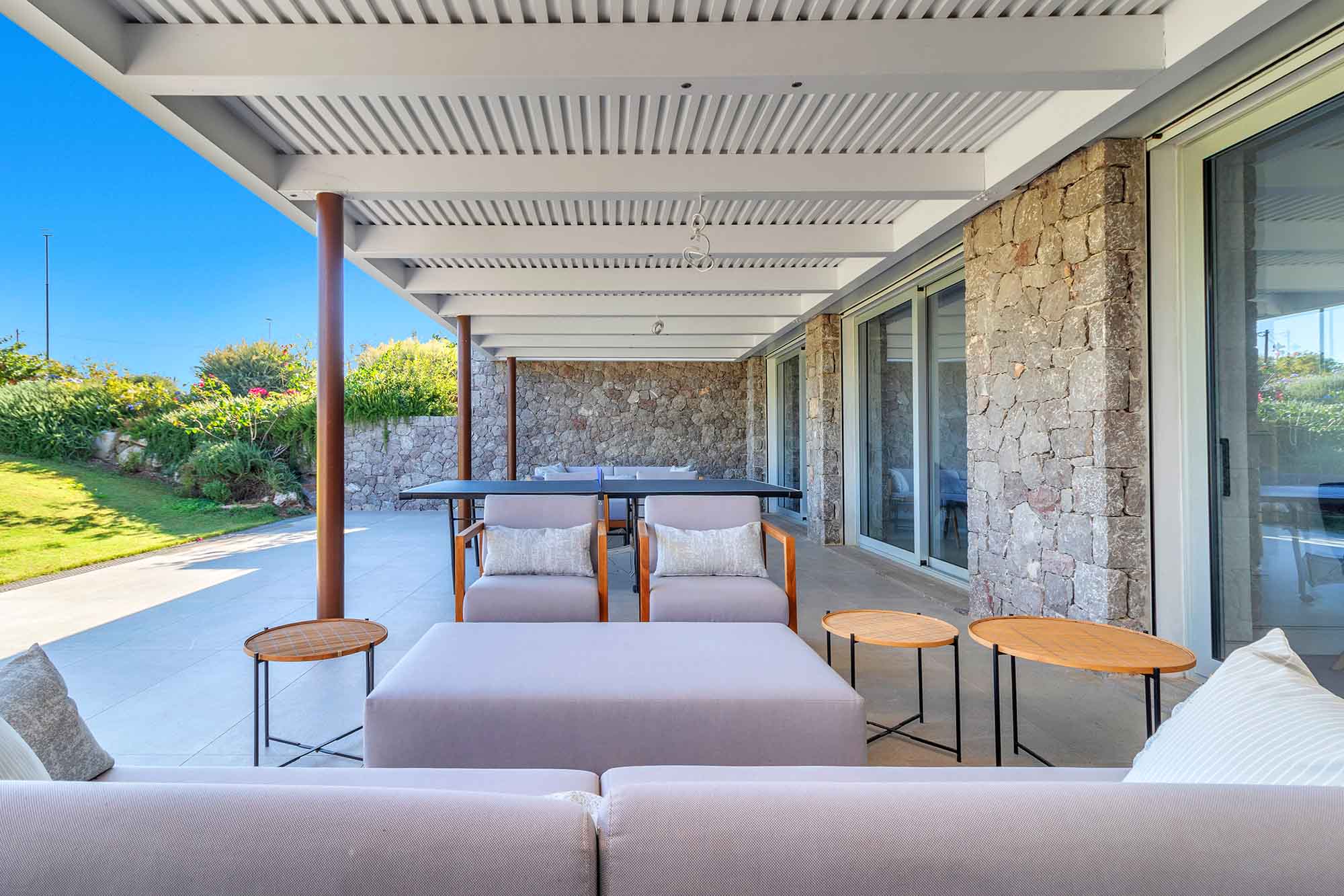 The exterior areas of the villa include an infinity style pool, a barbeque area, a dining area, parking space for 4 cars and a living area to enjoy the magnificent natural landscape. We particularly love the various lounge and dining areas which set the tone to enjoy a truly authentic Mediterranean garden ambiance and al fresco summer moments.